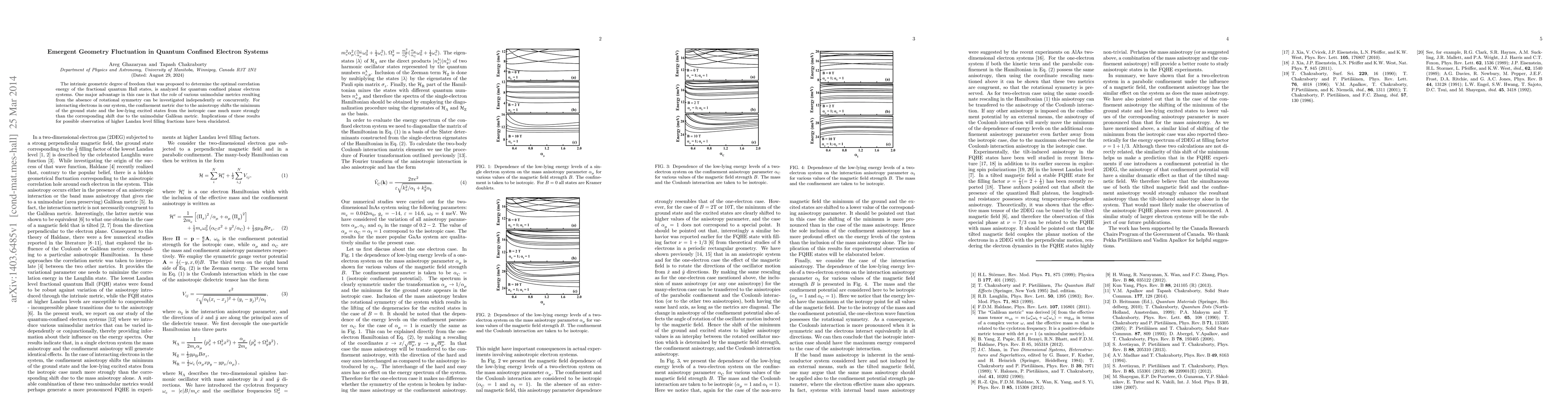 The intrinsic geometric degree of freedom that was proposed to determine the optimal correlation energy of the fractional quantum Hall states, is analyzed for quantum confined planar electron systems. One major advantage in this case is that the role of various unimodular metrics resulting from the absence of rotational symmetry can be investigated independently or concurrently. For interacting electrons in our system, the confinement metric due to the anisotropy shifts the minimum of the ground state and the low-lying excited states from the isotropic case much more strongly than the corresponding shift due to the unimodular Galilean metric. Implications of these results for possible observation of higher Landau level filling fractions have been elucidated.