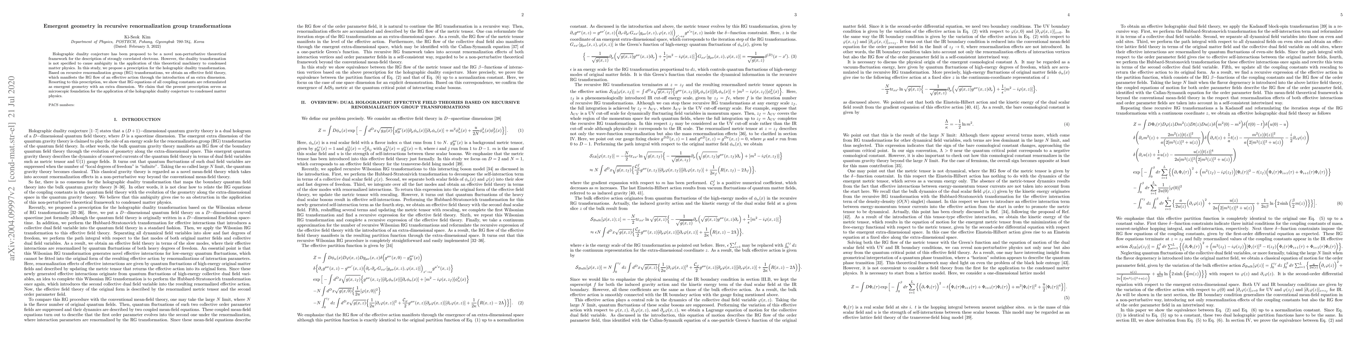This paper proposes a method for applying the holographic duality conjecture to condensed matter physics by using recursive renormalization group transformations. It introduces an effective field theory and emergent geometry with an extra dimension to reformulate the renormalization group equations, providing a microscopic foundation for the duality.