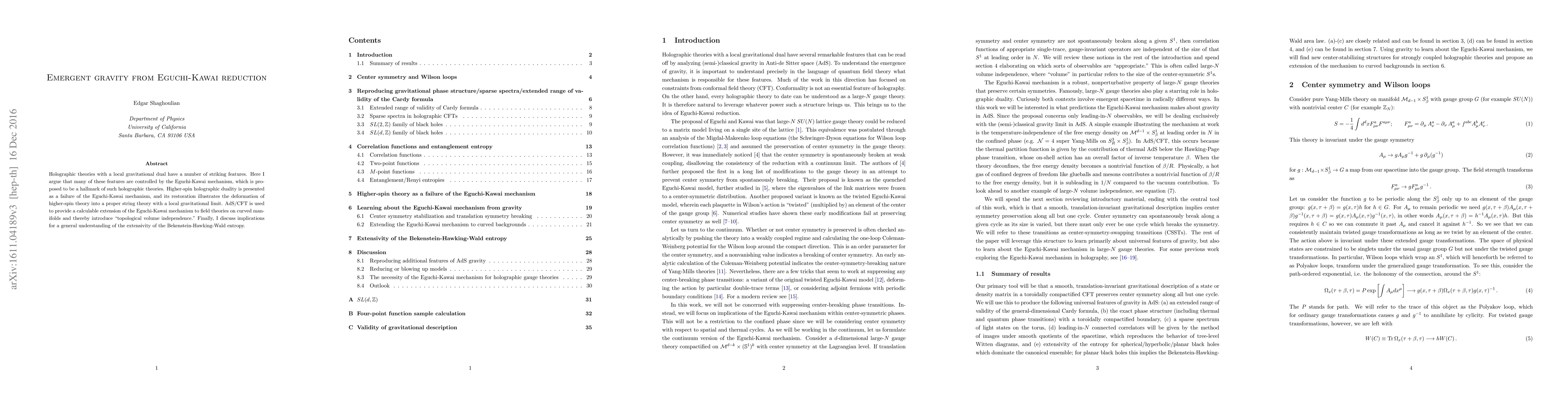 The paper argues that the Eguchi-Kawai mechanism underlies many features of holographic theories with local gravitational duals and explores its failure in higher-spin holographic duality, which can be restored through deformation into a string theory. It uses AdS/CFT to extend the Eguchi-Kawai mechanism to field theories on curved manifolds, introducing topological volume independence, and discusses implications for understanding Bekenstein-Hawking-Wald entropy.