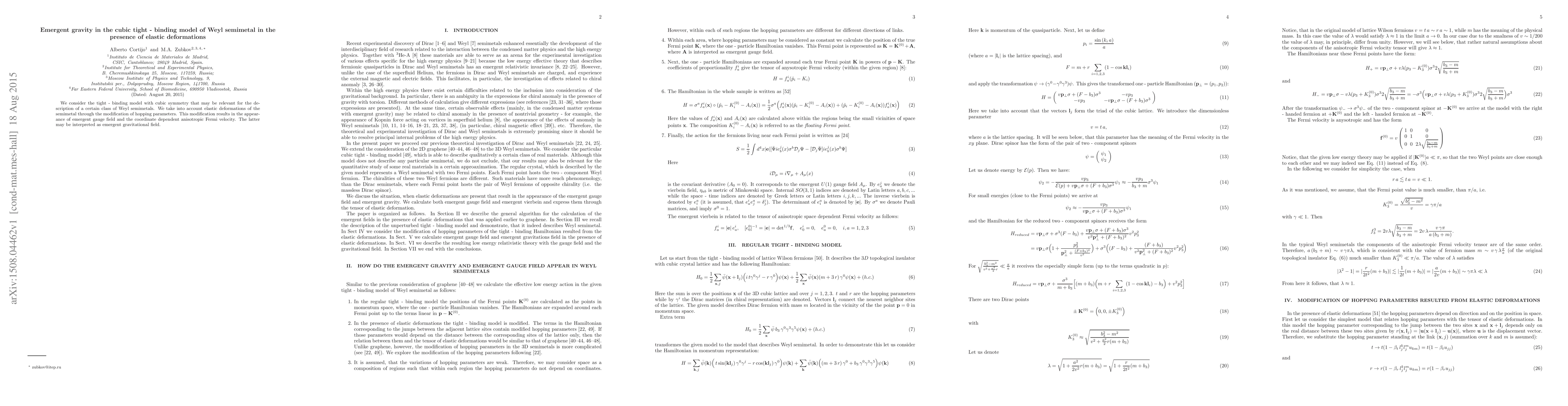 Researchers found that adding elastic deformations to a cubic tight-binding model used to describe Weyl semimetals creates an emergent gravitational field with anisotropic properties, similar to how gravity works in our universe.