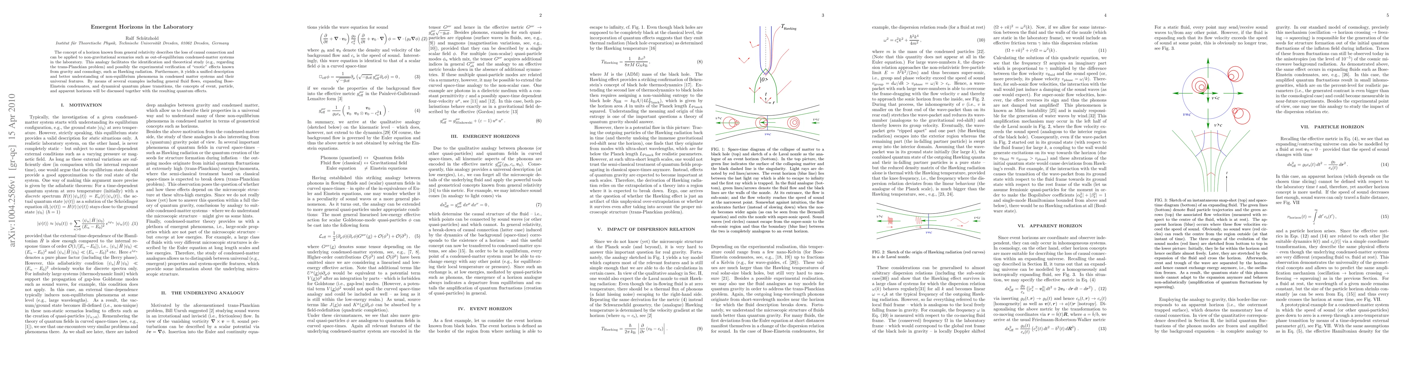 The concept of a horizon known from general relativity describes the loss of causal connection and can be applied to non-gravitational scenarios such as out-of-equilibrium condensed-matter systems in the laboratory. This analogy facilitates the identification and theoretical study (e.g., regarding the trans-Planckian problem) and possibly the experimental verification of "exotic" effects known from gravity and cosmology, such as Hawking radiation. Furthermore, it yields a unified description and better understanding of non-equilibrium phenomena in condensed matter systems and their universal features. By means of several examples including general fluid flows, expanding Bose-Einstein condensates, and dynamical quantum phase transitions, the concepts of event, particle, and apparent horizons will be discussed together with the resulting quantum effects.