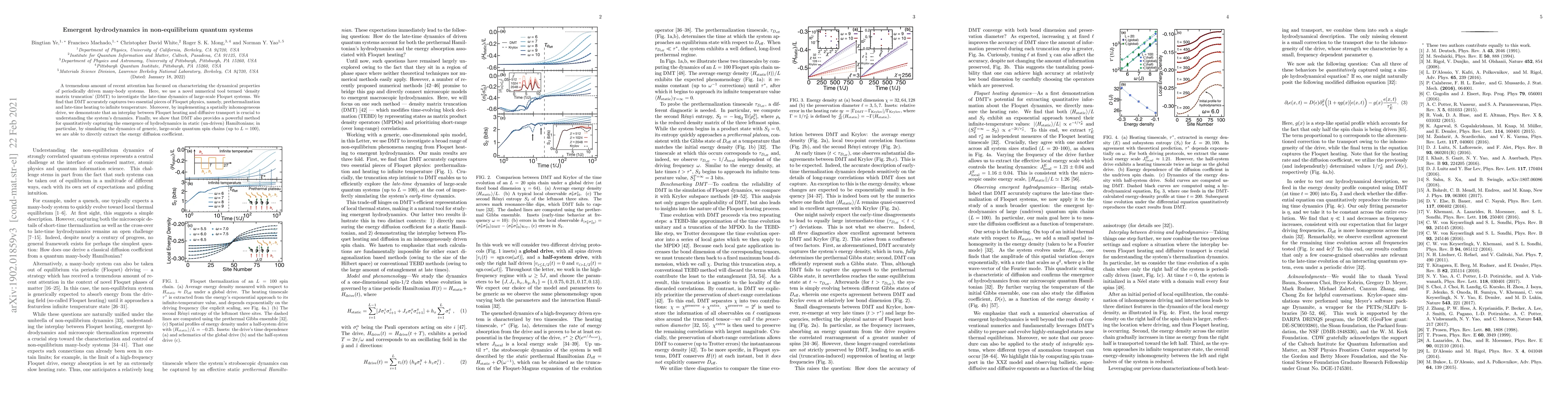 Researchers used a new numerical tool to study the late-time dynamics of large-scale quantum systems driven by periodic forces. They found that these systems exhibit emergent hydrodynamics in both driven and static cases.