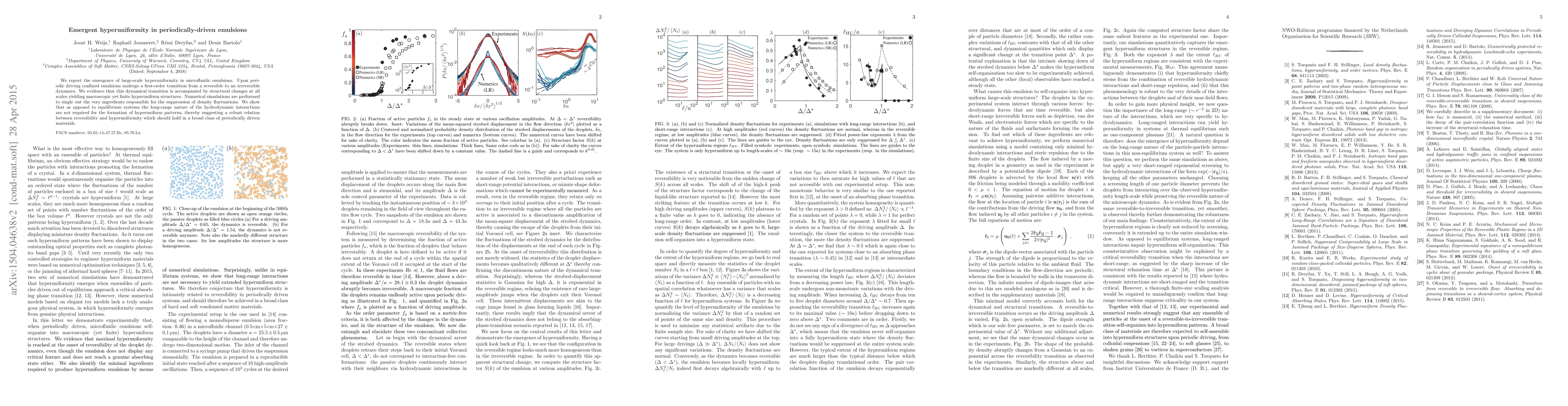 This paper explores how periodically driven emulsions transition to large-scale hyperuniformity, revealing structural changes at all scales. Unlike equilibrium systems, the formation of these hyperuniform patterns does not require long-range hydrodynamic interactions, suggesting a robust link between reversibility and hyperuniformity in driven materials.