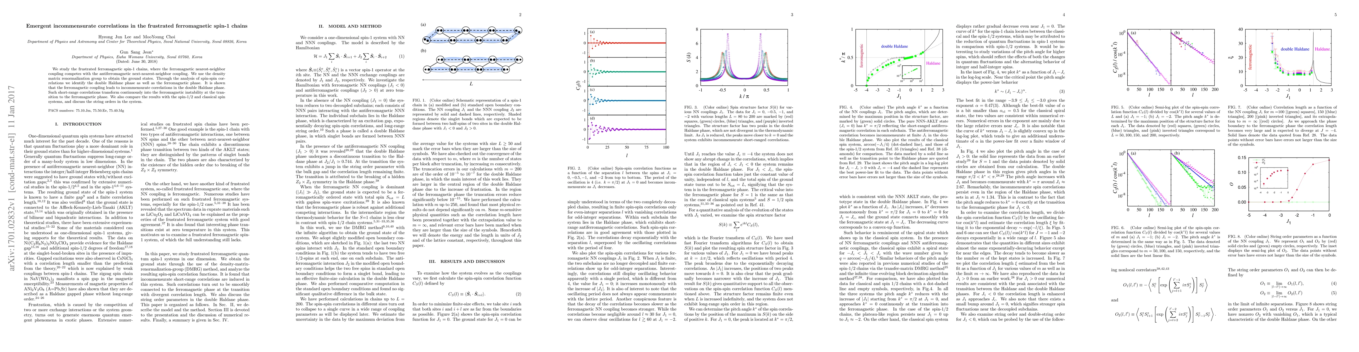 This paper investigates frustrated ferromagnetic spin-1 chains, revealing emergent incommensurate correlations in the double Haldane phase due to ferromagnetic coupling. The study uses density matrix renormalization group to identify phases and compares findings with spin-1/2 and classical spin systems.