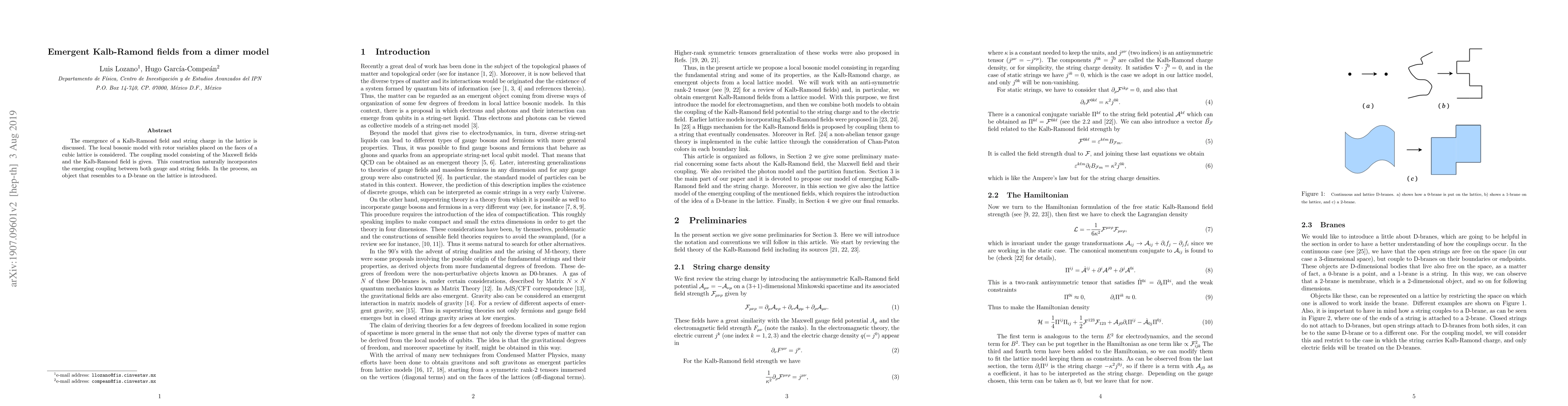 This paper explores how Kalb-Ramond fields and string charge emerge in a lattice model using rotor variables on cubic lattice faces, revealing a coupling between gauge and string fields, and introducing a lattice analogue of a D-brane.