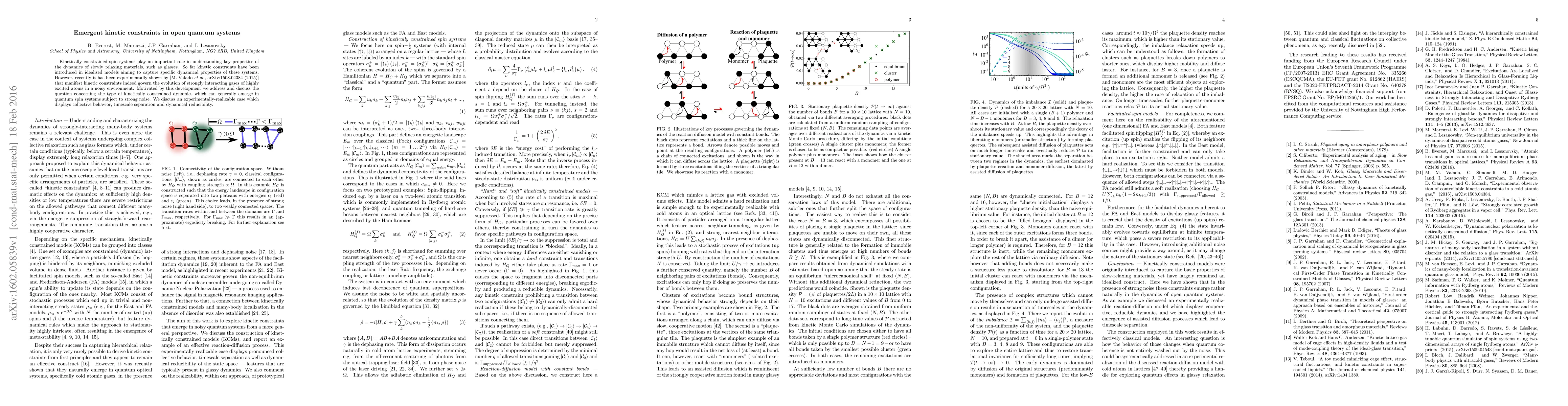 Kinetically constrained spin systems play an important role in understanding key properties of the dynamics of slowly relaxing materials, such as glasses. So far kinetic constraints have been introduced in idealised models aiming to capture specific dynamical properties of these systems. However, recently it has been experimentally shown by [M. Valado et al., arXiv:1508.04384 (2015)] that manifest kinetic constraints indeed govern the evolution of strongly interacting gases of highly excited atoms in a noisy environment. Motivated by this development we address and discuss the question concerning the type of kinetically constrained dynamics which can generally emerge in quantum spin systems subject to strong noise. We discuss an experimentally-realizable case which displays collective behavior, timescale separation and dynamical reducibility.