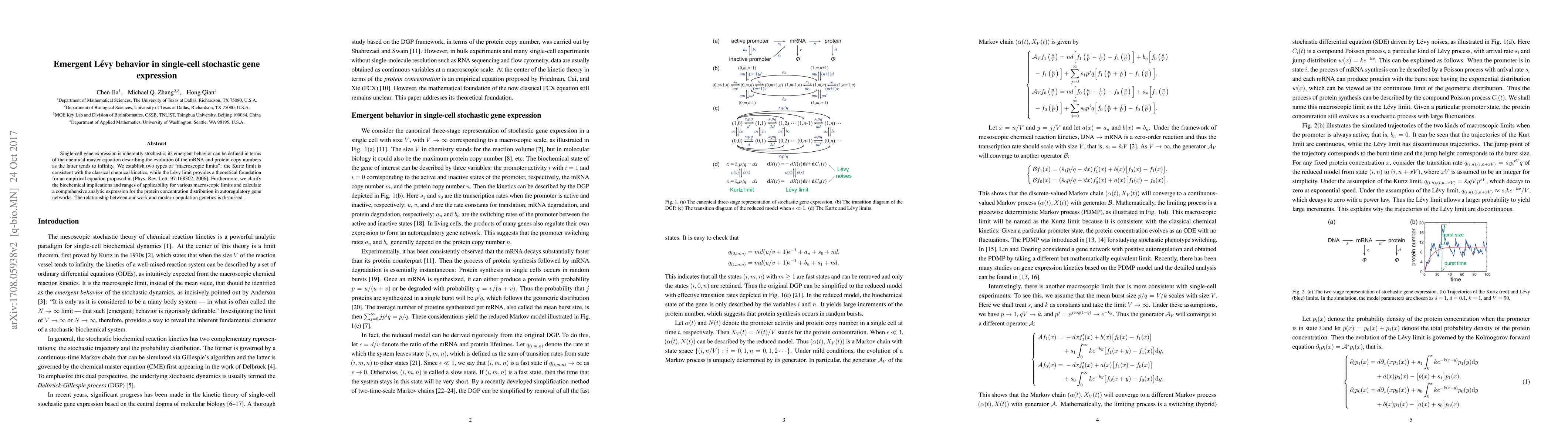 Single-cell gene expression is inherently stochastic; its emergent behavior can be defined in terms of the chemical master equation describing the evolution of the mRNA and protein copy numbers as the latter tends to infinity. We establish two types of "macroscopic limits": the Kurtz limit is consistent with the classical chemical kinetics, while the L\'{e}vy limit provides a theoretical foundation for an empirical equation proposed in [Phys. Rev. Lett. 97:168302, 2006]. Furthermore, we clarify the biochemical implications and ranges of applicability for various macroscopic limits and calculate a comprehensive analytic expression for the protein concentration distribution in autoregulatory gene networks. The relationship between our work and modern population genetics is discussed.