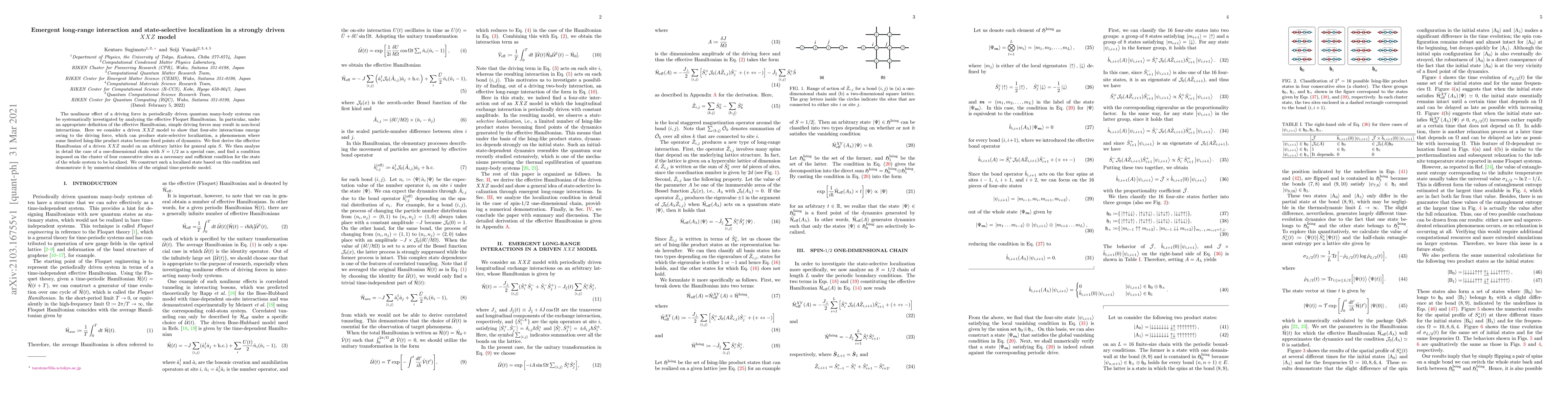 A driven XXZ model on a one-dimensional chain can exhibit state-selective localization due to non-local interactions caused by the driving force. This phenomenon occurs under specific conditions that lead to the emergence of four-site interactions.