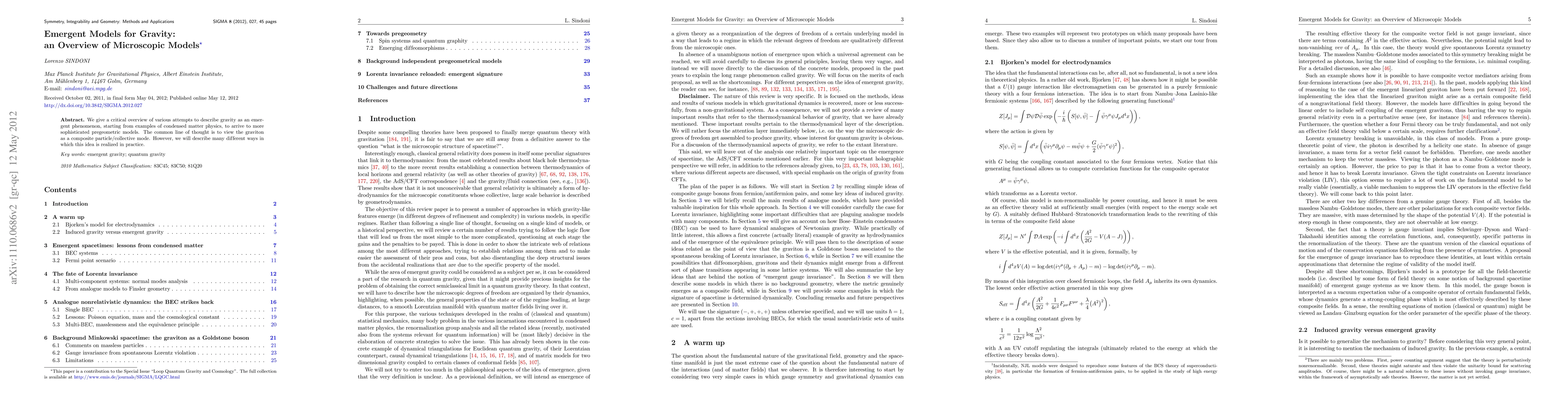We give a critical overview of various attempts to describe gravity as an emergent phenomenon, starting from examples of condensed matter physics, to arrive to more sophisticated pregeometric models. The common line of thought is to view the graviton as a composite particle/collective mode. However, we will describe many different ways in which this idea is realized in practice.