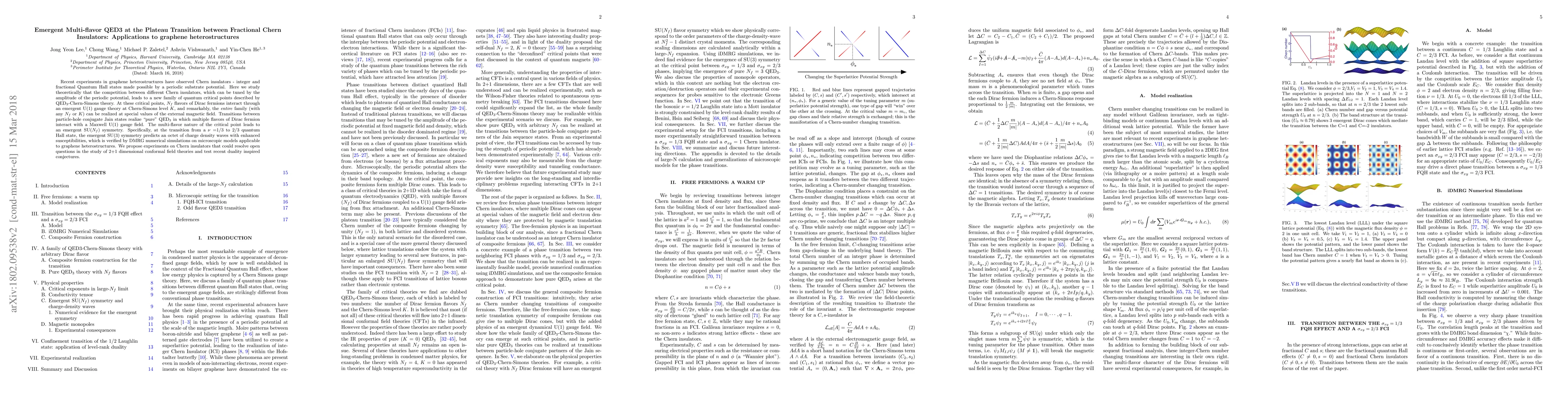 This paper theoretically investigates the competition between different Chern insulators in graphene heterostructures, leading to a new quantum critical point described by QED$_3$-Chern-Simons theory. The study reveals emergent multi-flavor QED$_3$ at the transition between fractional quantum Hall states, predicting an octet of charge density waves with enhanced susceptibilities, verified by DMRG simulations.