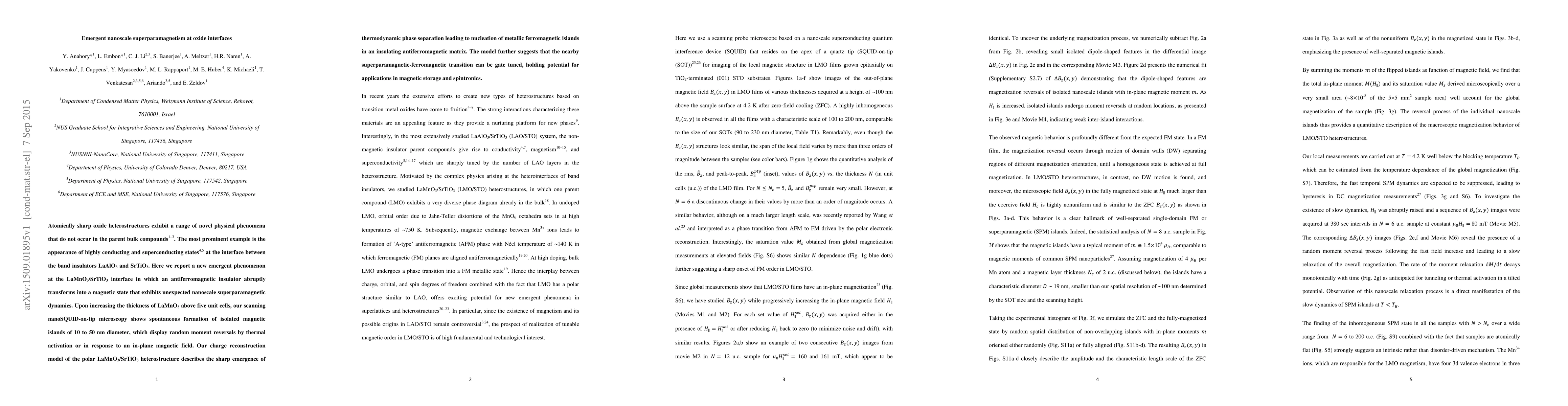 Research reveals nanoscale superparamagnetism at LaMnO3/SrTiO3 oxide interfaces, where an antiferromagnetic insulator transforms into magnetic islands showing random moment reversals. The study suggests a gate-tunable transition with implications for magnetic storage and spintronics.