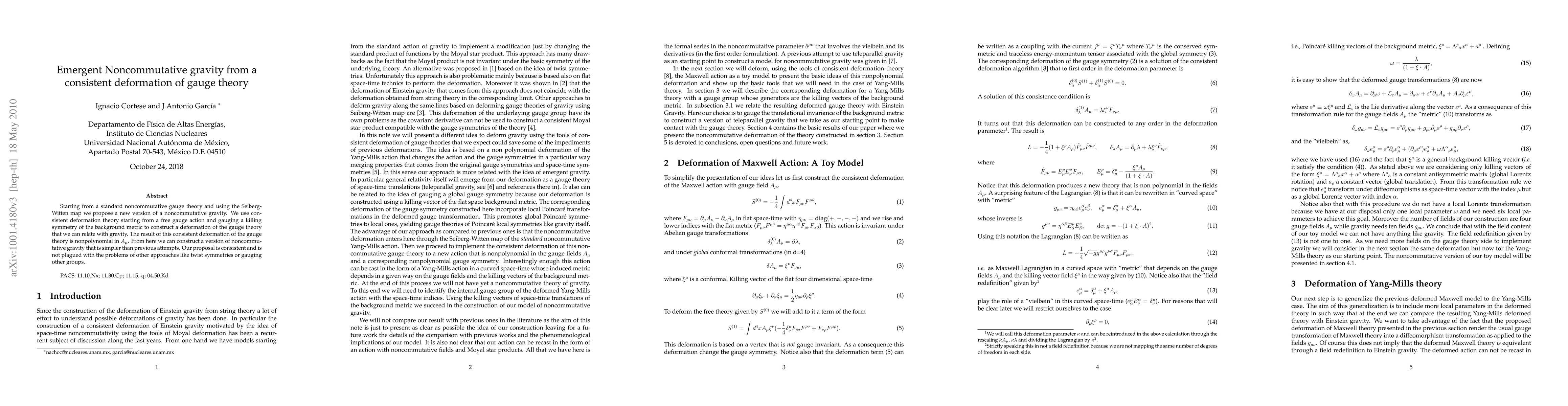 The paper proposes a new version of noncommutative gravity derived from a consistent deformation of noncommutative gauge theory, employing the Seiberg-Witten map and gauging a background metric's Killing symmetry. The resulting nonpolynomial deformation offers a simpler and more consistent approach compared to previous methods.