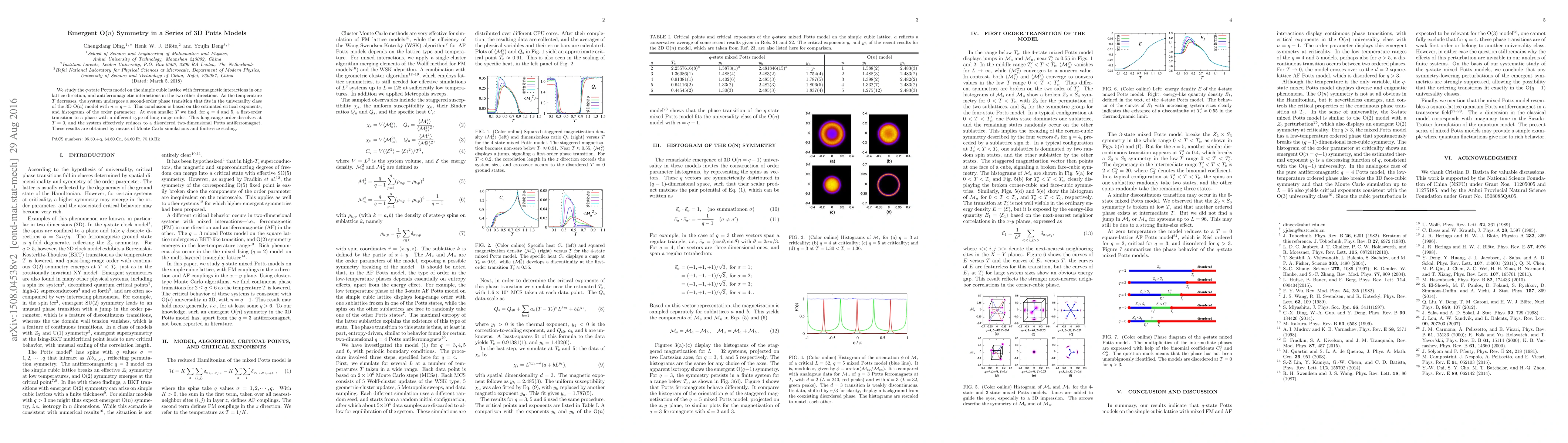 We study the q-state Potts model on the simple cubic lattice with ferromagnetic interactions in one lattice direction, and antiferromagnetic interactions in the two other directions. As the temperature T decreases, the system undergoes a second-order phase transition that fits in the universality class of the 3D O(n) model with n=q-1. This conclusion is based on the estimated critical exponents, and histograms of the order parameter. At even smaller T we find, for q=4 and 5, a first-order transition to a phase with a different type of long-range order. This long-range order dissolves at T=0, and the system effectively reduces to a disordered two-dimensional Potts antiferromagnet. These results are obtained by means of Monte Carlo simulations and finite-size scaling.
