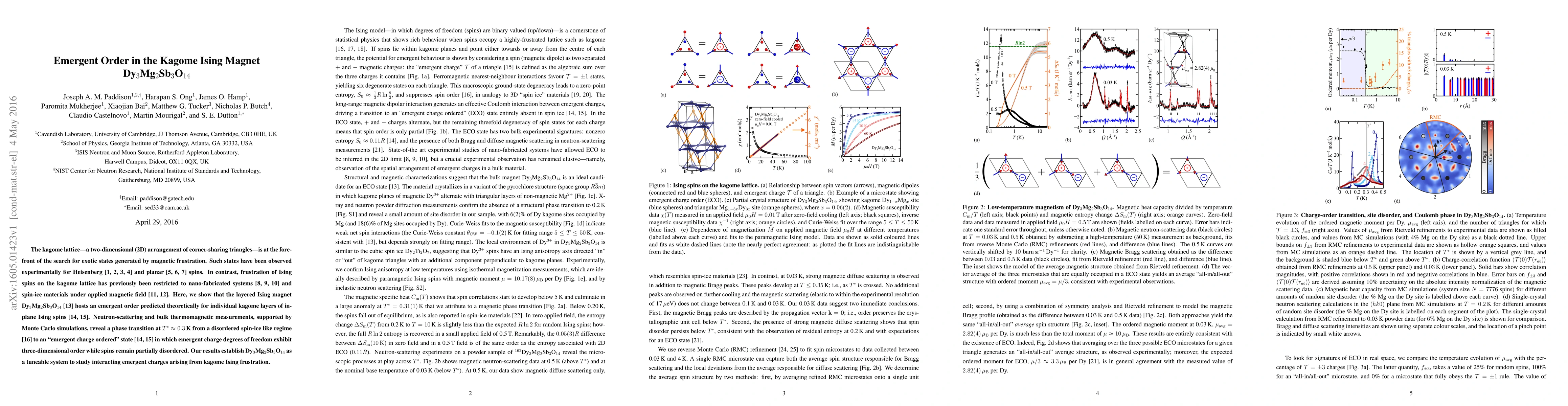 The paper presents detailed neutron-scattering and thermomagnetic measurements, supported by Monte Carlo simulations, to reveal the emergent charge order in Dy3Mg2Sb3O14.