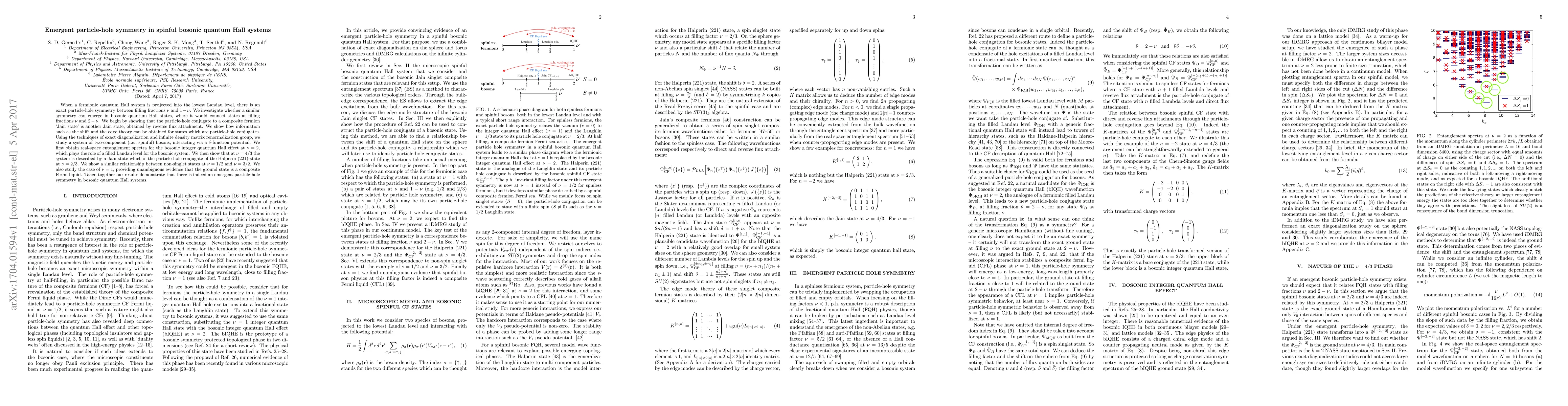 This paper investigates the emergent particle-hole symmetry in spinful bosonic quantum Hall systems, revealing connections between states at filling fractions $\nu$ and $2-\nu$. It demonstrates that the ground state at $\nu=4/3$ corresponds to a particle-hole conjugate of the Halperin (221) state at $\nu=2/3$, and similarly for $\nu=1/2$ and $\nu=3/2$, ultimately confirming the existence of emergent particle-hole symmetry in these systems.