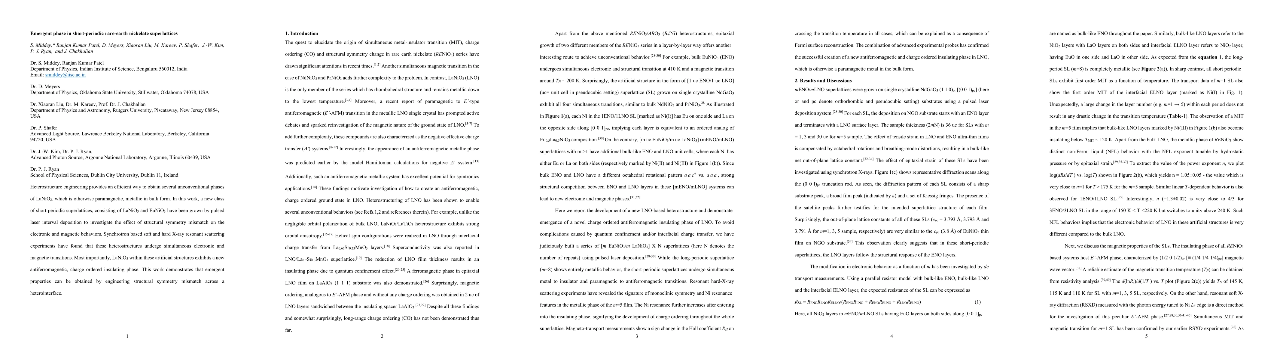 This research investigates the electronic and magnetic behaviors of short-periodic LaNiO3/EuNiO3 superlattices grown via pulsed laser deposition, revealing an emergent antiferromagnetic, charge-ordered insulating phase in LaNiO3 due to structural symmetry mismatch. Synchrotron X-ray experiments confirm these transitions, showcasing the potential of heterostructure engineering for inducing novel properties.