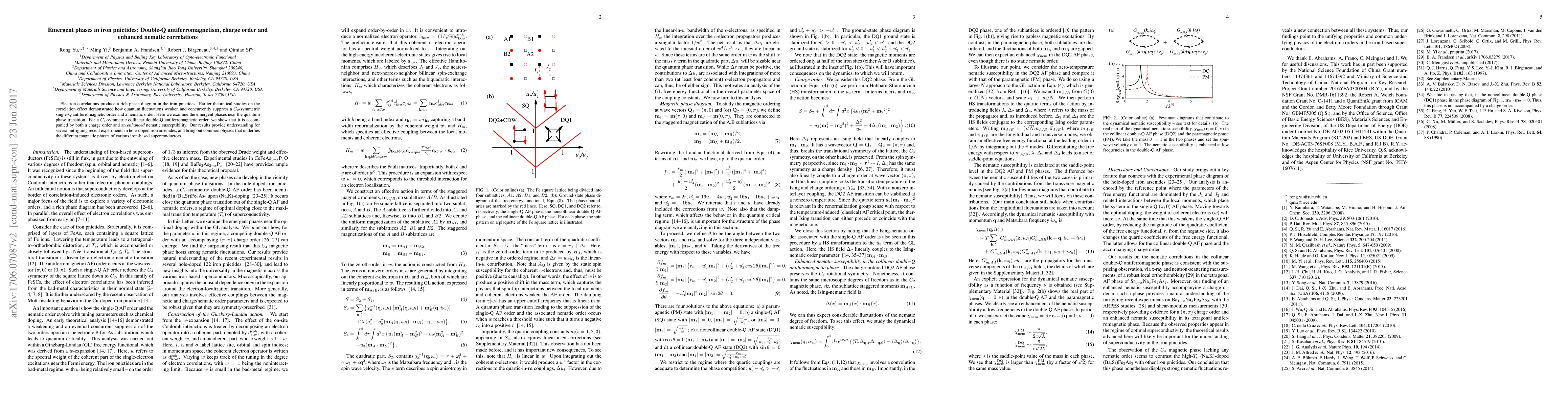 This paper investigates the complex phase diagram of iron pnictides, revealing that double-Q antiferromagnetism emerges alongside charge order and enhanced nematic correlations near the quantum phase transition. These findings help explain recent experimental observations in hole-doped iron arsenides and highlight shared physics across different magnetic phases in iron-based superconductors.