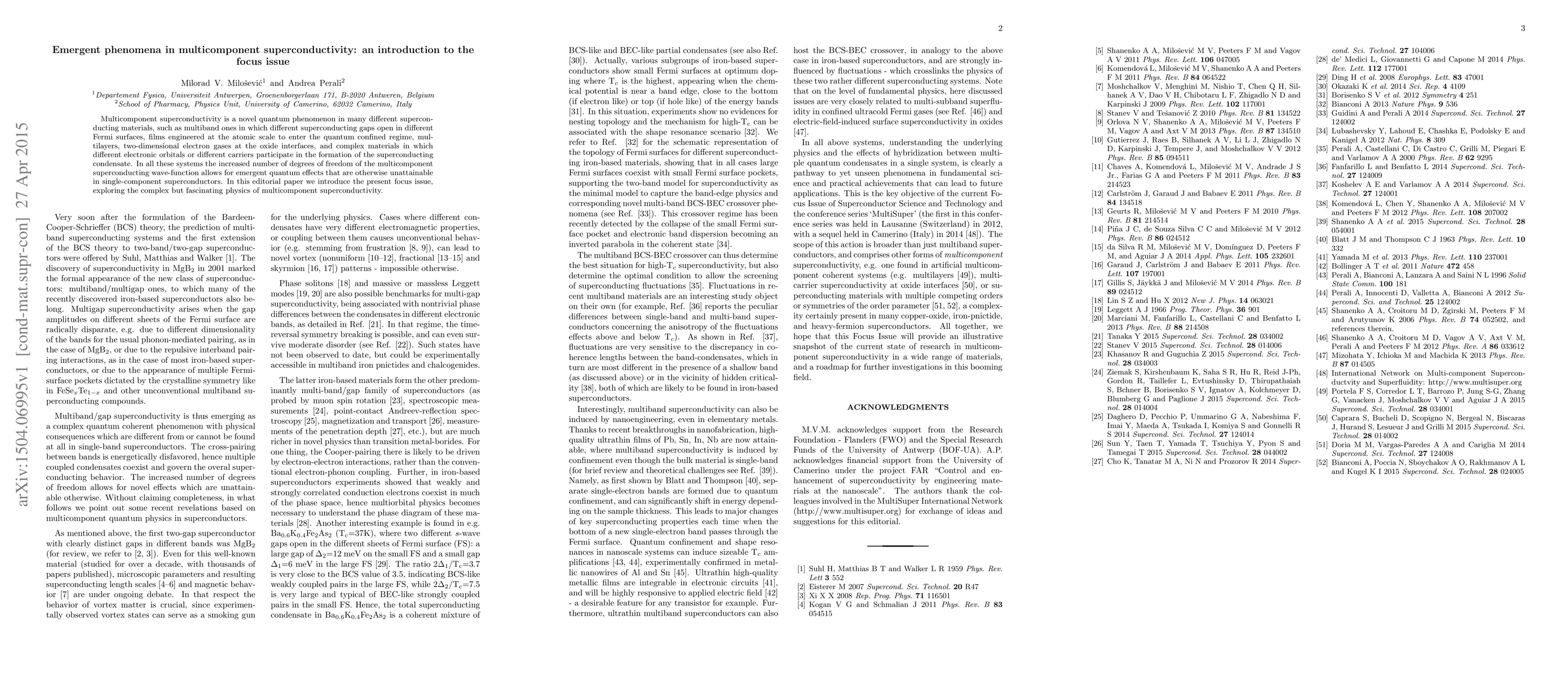 Multicomponent superconductivity in various materials shows emergent quantum effects due to increased degrees of freedom, enabling phenomena not seen in single-component superconductors. This paper introduces the focus issue on multicomponent superconductivity, exploring its complex physics.