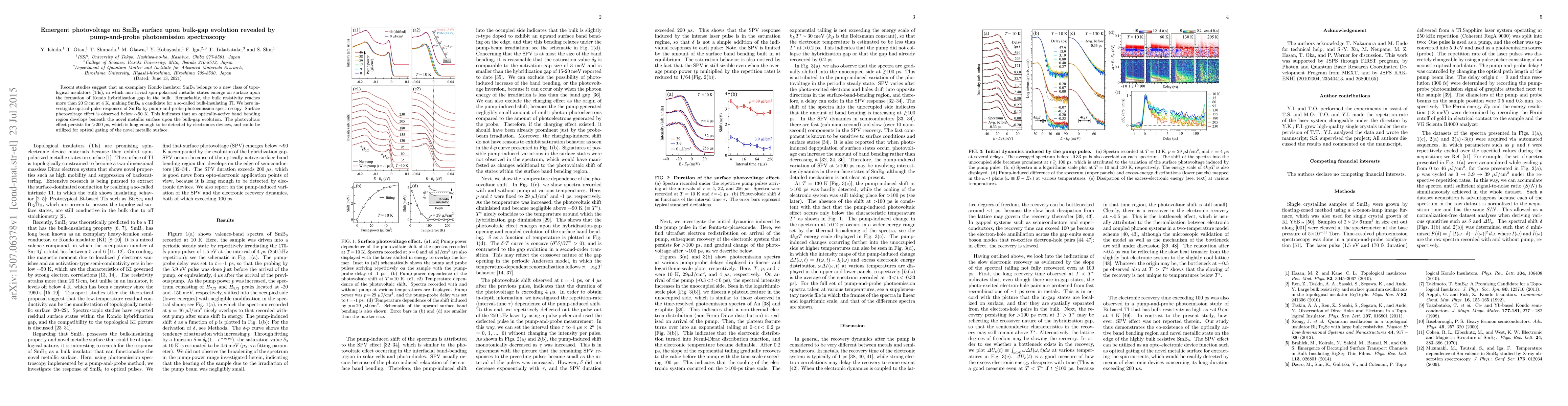 This study reveals that SmB6, a candidate bulk-insulating topological insulator, exhibits an emergent photovoltage on its surface below ~90 K, detected via pump-and-probe photoemission spectroscopy. The observed photovoltaic effect suggests the development of an optically-active band bending region, potentially useful for optical gating applications.