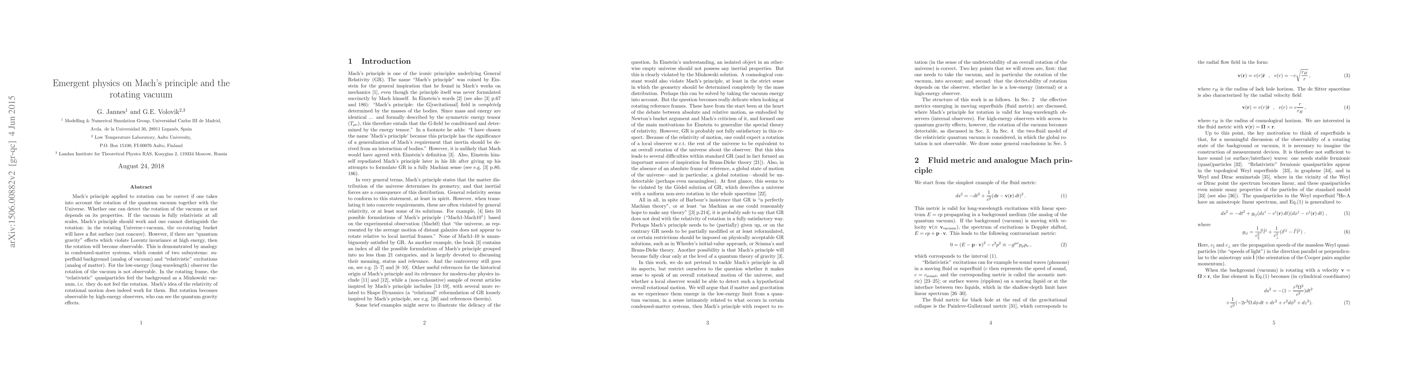 This paper explores how Mach's principle can be reconciled with the rotation of the quantum vacuum, suggesting that at low energies, vacuum rotation is undetectable due to relativistic effects, but becomes observable at high energies due to quantum gravity violations of Lorentz invariance. Analogies from condensed-matter systems support the theory.