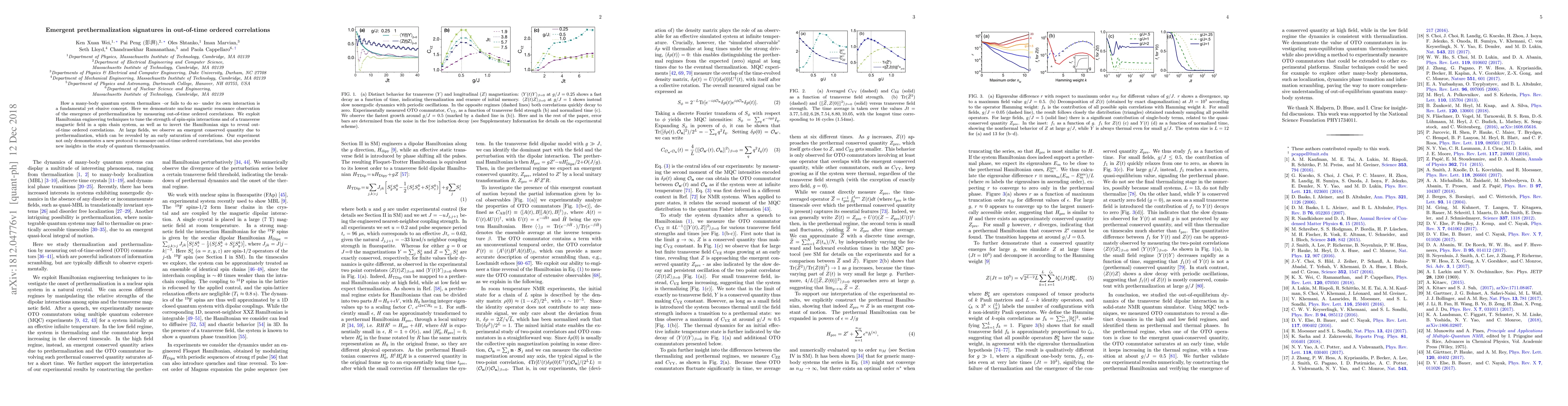 This paper demonstrates nuclear magnetic resonance observations of prethermalization in a spin chain system, revealing emergent conserved quantities through out-of-time ordered correlations. The study uses Hamiltonian engineering to manipulate spin-spin interactions and magnetic fields, providing new insights into quantum thermodynamics.