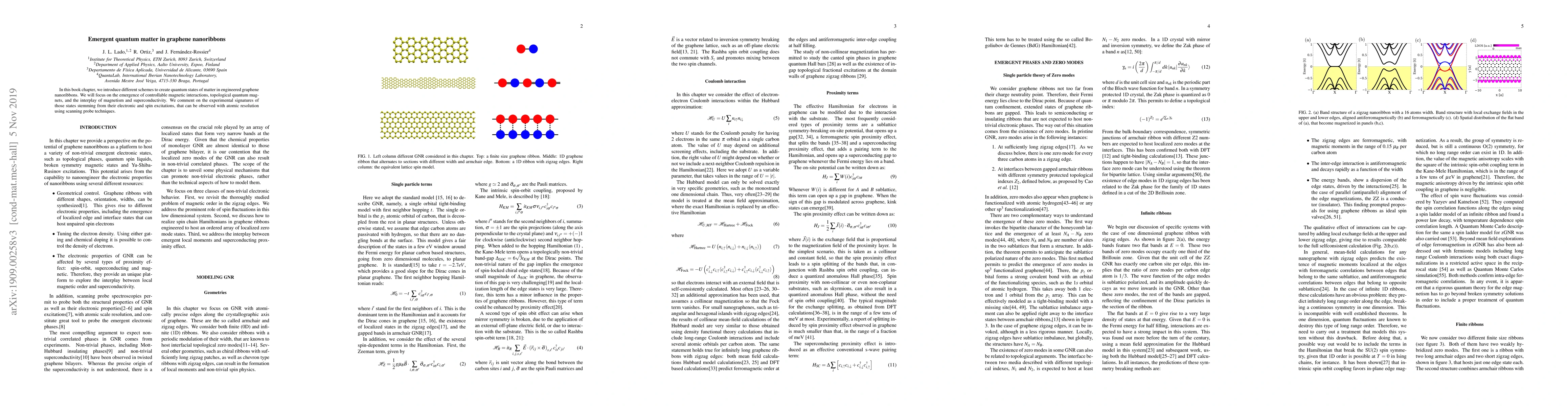 In this book chapter, we introduce different schemes to create quantum states of matter in engineered graphene nanoribbons. We will focus on the emergence of controllable magnetic interactions, topological quantum magnets, and the interplay of magnetism and superconductivity. We comment on the experimental signatures of those states stemming from their electronic and spin excitations, that can be observed with atomic resolution using scanning probe techniques.