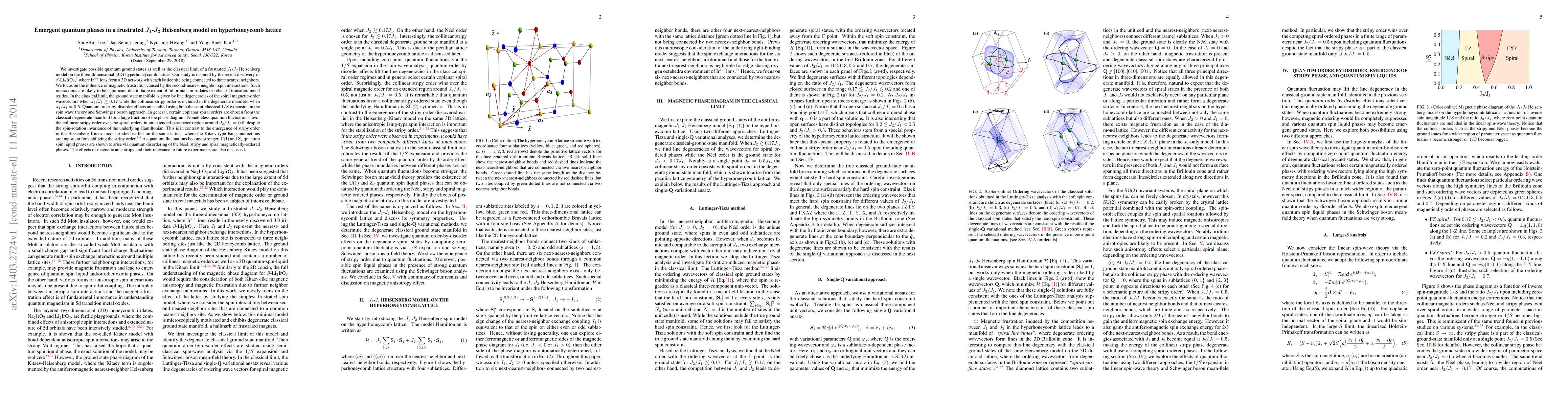 This paper explores the quantum and classical phases of a J1-J2 Heisenberg model on a 3D hyperhoneycomb lattice, focusing on the impact of second-nearest neighbor interactions. It finds that quantum fluctuations favor collinear stripy order over spiral orders, leading to the emergence of U(1) and Z2 quantum spin liquid phases, contrasting with classical degeneracies.