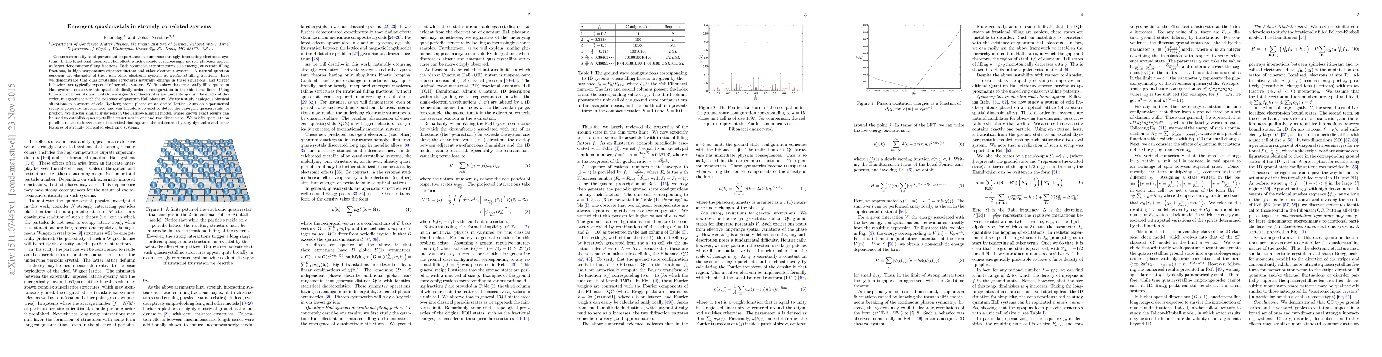 This paper demonstrates that quasicrystalline structures emerge in strongly correlated electronic systems at irrational filling fractions, leading to unexpected behaviors. It shows this phenomenon through the Fractional Quantum Hall effect and cold Rydberg atoms in optical lattices, and speculates on connections to glassy dynamics in such systems.