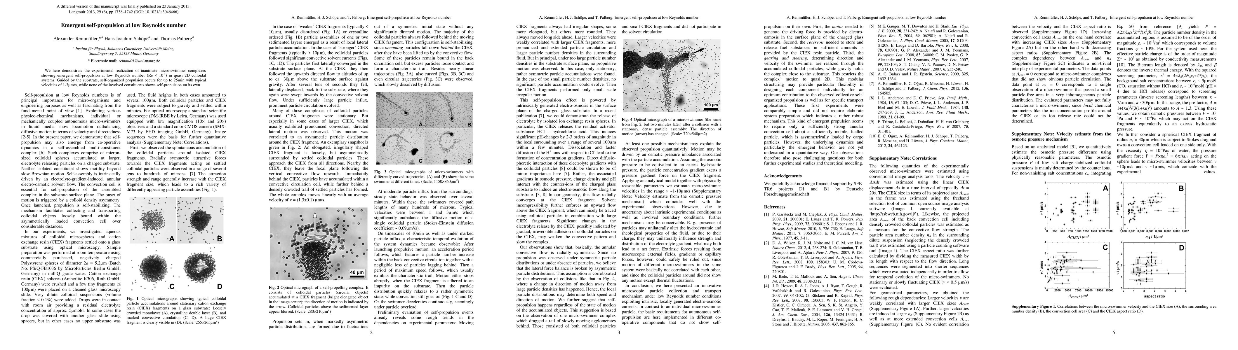 Researchers demonstrate self-propulsion in micro-swimmer complexes at low Reynolds number, achieving velocities of 1-3 μm/s for up to 25 minutes without individual constituents showing propulsion on their own.