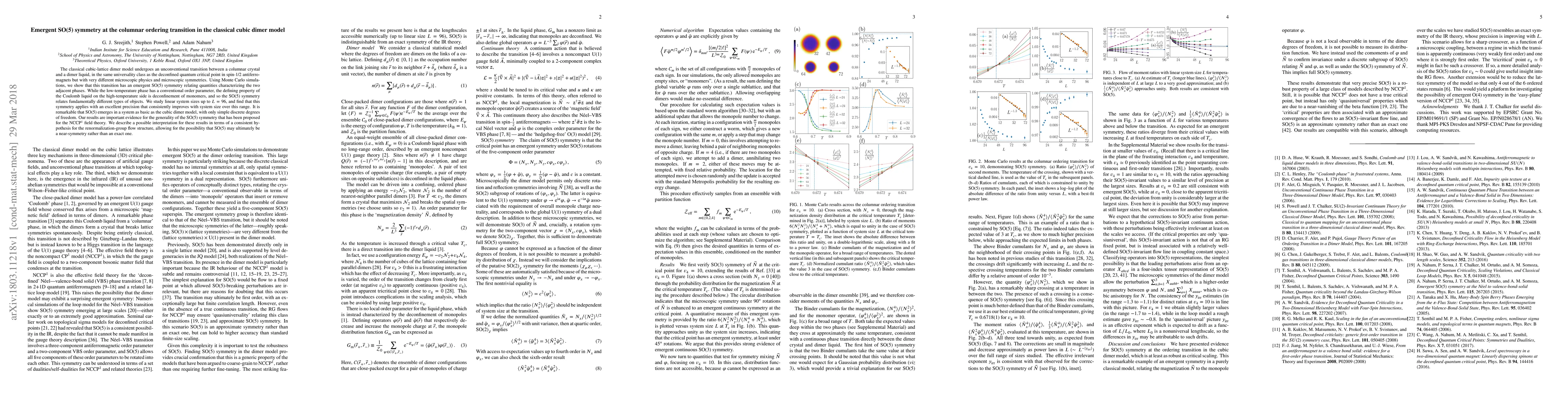 This paper demonstrates an emergent SO(5) symmetry in the classical cubic dimer model at the transition between columnar ordering and dimer liquid phases, akin to the deconfined quantum critical point. The symmetry relates distinct properties of the two phases, suggesting a broader applicability of SO(5) beyond quantum systems.