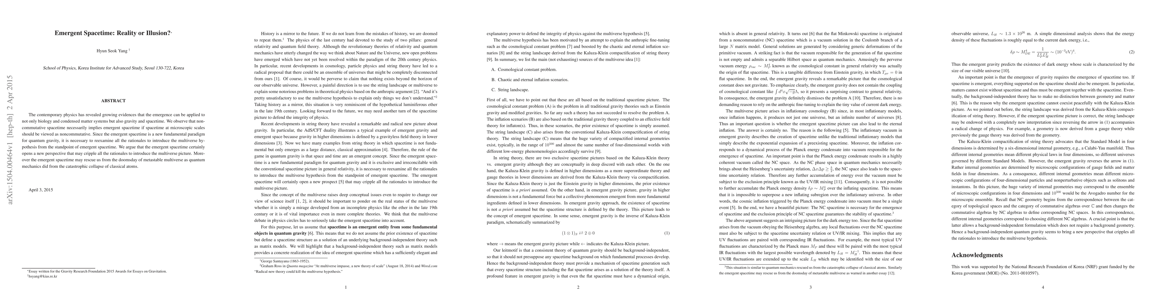 This paper explores the concept of emergent spacetime as a fundamental paradigm in quantum gravity, suggesting it may invalidate the multiverse hypothesis. It posits that emergent spacetime could offer a new perspective, potentially resolving issues like the metastable multiverse, akin to how quantum mechanics resolved classical atomic instability.
