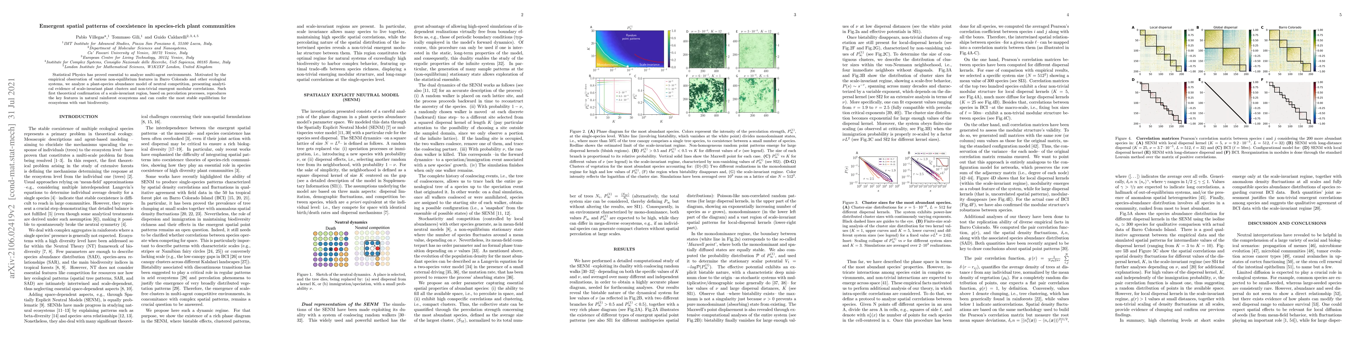 This paper uses statistical physics to analyze plant-species abundance in species-rich communities, revealing scale-invariant plant clusters and non-trivial modular correlations, providing a theoretical basis for stable equilibria in biodiverse ecosystems.