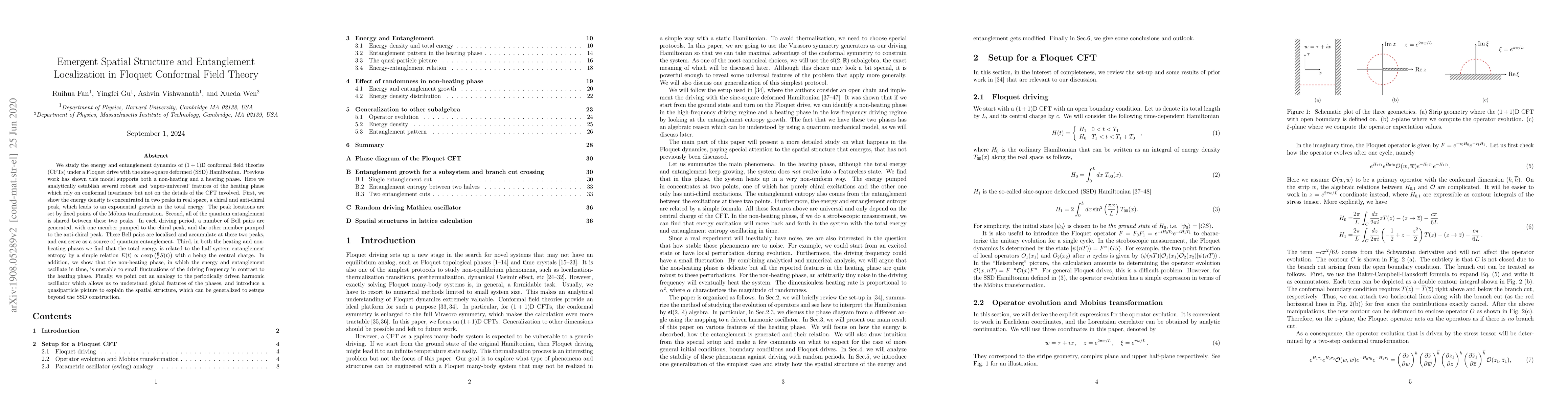 We study the energy and entanglement dynamics of $(1+1)$D conformal field theories (CFTs) under a Floquet drive with the sine-square deformed (SSD) Hamiltonian. Previous work has shown this model supports both a non-heating and a heating phase. Here we analytically establish several robust and `super-universal' features of the heating phase which rely on conformal invariance but not on the details of the CFT involved. First, we show the energy density is concentrated in two peaks in real space, a chiral and anti-chiral peak, which leads to an exponential growth in the total energy. The peak locations are set by fixed points of the M\"obius transformation. Second, all of the quantum entanglement is shared between these two peaks. In each driving period, a number of Bell pairs are generated, with one member pumped to the chiral peak, and the other member pumped to the anti-chiral peak. These Bell pairs are localized and accumulate at these two peaks, and can serve as a source of quantum entanglement. Third, in both the heating and non-heating phases we find that the total energy is related to the half system entanglement entropy by a simple relation $E(t)\propto c \exp \left( \frac{6}{c}S(t) \right)$ with $c$ being the central charge. In addition, we show that the non-heating phase, in which the energy and entanglement oscillate in time, is unstable to small fluctuations of the driving frequency in contrast to the heating phase. Finally, we point out an analogy to the periodically driven harmonic oscillator which allows us to understand global features of the phases, and introduce a quasiparticle picture to explain the spatial structure, which can be generalized to setups beyond the SSD construction.