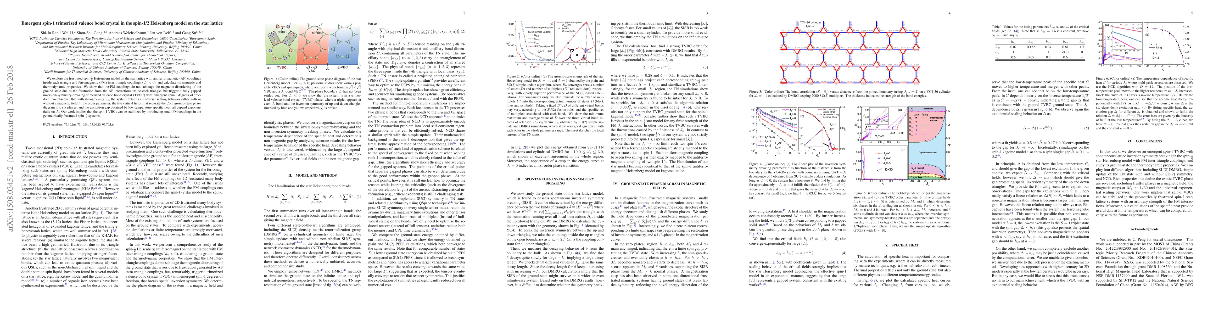 This research investigates the spin-1/2 Heisenberg model on a star lattice with frustrated antiferromagnetic and ferromagnetic couplings. It reveals an emergent spin-1 trimerized valence bond crystal (TVBC) ground state that forms due to frustration and ferromagnetic inter-triangle interactions, exhibiting exponential scaling of system properties with the ferromagnetic coupling strength, J_e. The study calculates temperature-dependent specific heat, offering insights for future experimental comparisons.