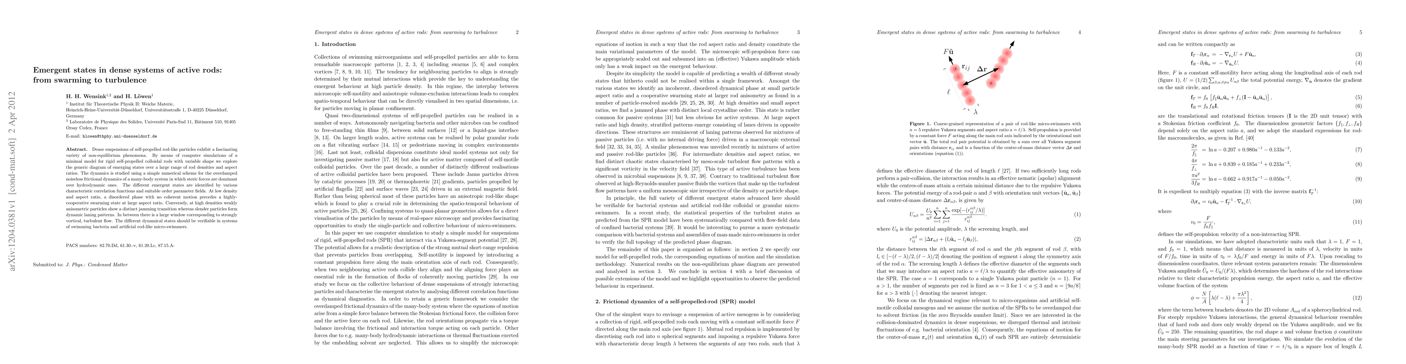 Dense suspensions of self-propelled rod-like particles exhibit a fascinating variety of non-equilibrium phenomena. By means of computer simulations of a minimal model for rigid self-propelled colloidal rods with variable shape we explore the generic diagram of emerging states over a large range of rod densities and aspect ratios. The dynamics is studied using a simple numerical scheme for the overdamped noiseless frictional dynamics of a many-body system in which steric forces are dominant over hydrodynamic ones. The different emergent states are identified by various characteristic correlation functions and suitable order parameter fields. At low density and aspect ratio, a disordered phase with no coherent motion precedes a highly-cooperative swarming state at large aspect ratio. Conversely, at high densities weakly anisometric particles show a distinct jamming transition whereas slender particles form dynamic laning patterns. In between there is a large window corresponding to strongly vortical, turbulent flow. The different dynamical states should be verifiable in systems of swimming bacteria and artificial rod-like micro-swimmers.