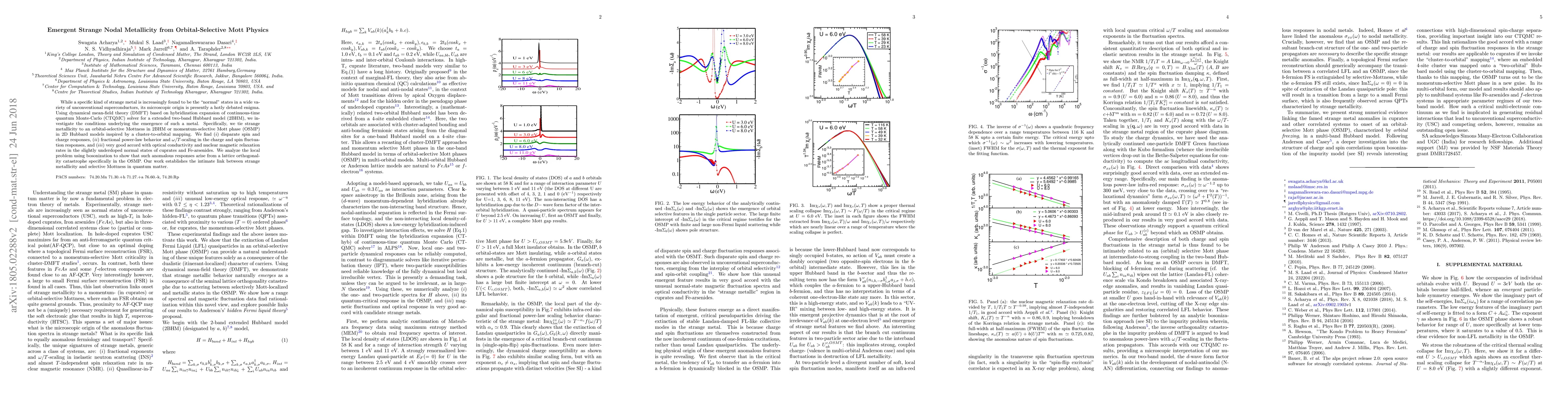 This paper investigates the emergence of strange nodal metallicity in unconventional superconductors using DMFT and CTQMC, linking it to orbital-selective Mottness in a two-band Hubbard model. It finds disparate spin and charge responses, fractional power-law behavior, and good agreement with experimental observations in cuprates and Fe-arsenides.