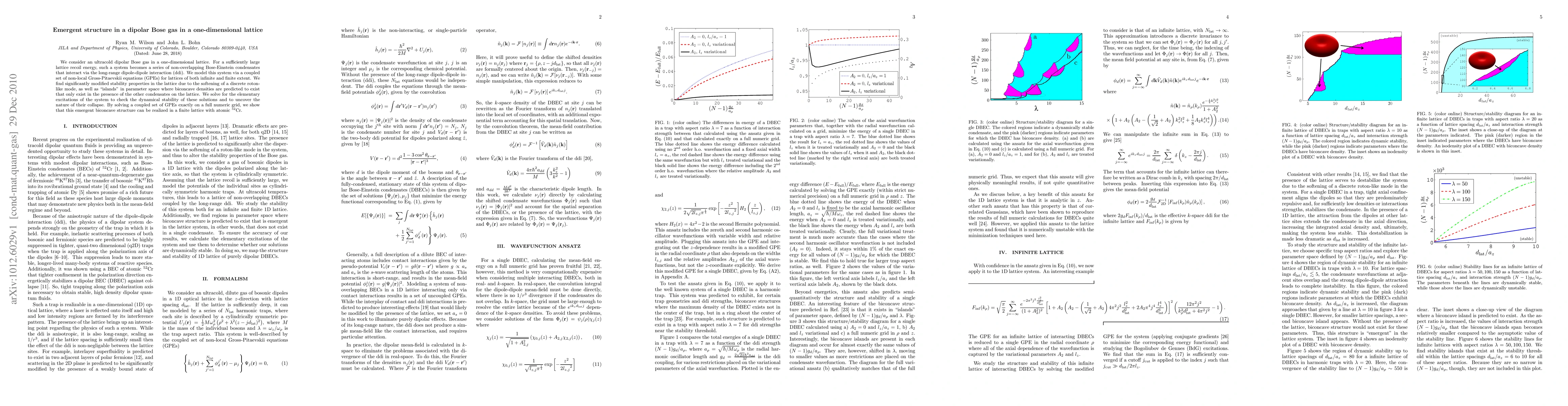We consider an ultracold dipolar Bose gas in a one-dimensional lattice. For a sufficiently large lattice recoil energy, such a system becomes a series of non-overlapping Bose-Einstein condensates that interact via the long-range dipole-dipole interaction (ddi). We model this system via a coupled set of non-local Gross-Pitaevskii equations (GPEs) for lattices of both infinite and finite extent. We find significantly modified stability properties in the lattice due to the softening of a discrete roton-like mode, as well as "islands" in parameter space where biconcave densities are predicted to exist that only exist in the presence of the other condensates on the lattice. We solve for the elementary excitations of the system to check the dynamical stability of these solutions and to uncover the nature of their collapse. By solving a coupled set of GPEs exactly on a full numeric grid, we show that this emergent biconcave structure can be realized in a finite lattice with atomic $^{52}$Cr.