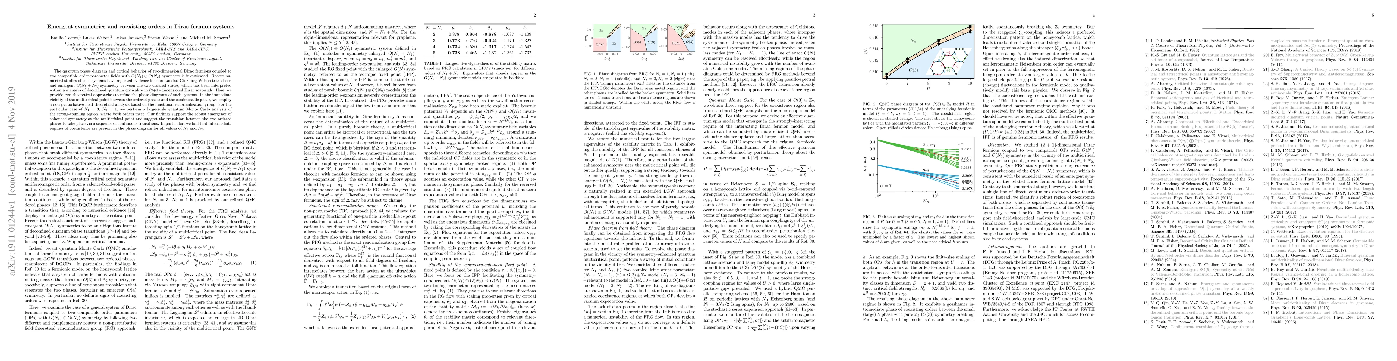 This paper investigates the quantum phase diagram and critical behavior of two-dimensional Dirac fermions coupled to two order-parameter fields, revealing emergent symmetries and coexisting orders. Theoretical approaches and numerical simulations support the emergence of enhanced symmetry at the multicritical point and continuous transitions between ordered phases.