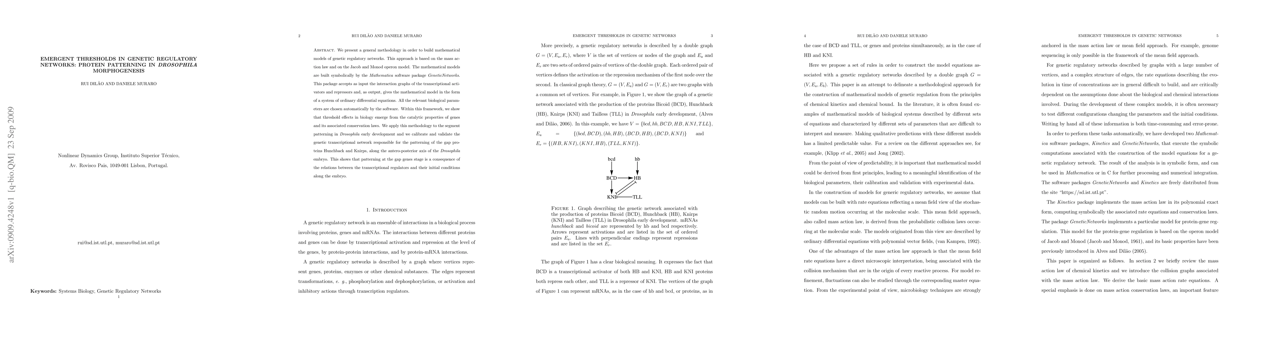 The novelty of this work lies in its systematic approach to modeling genetic regulatory networks, linking threshold behavior to gene catalytic properties and conservation laws, and validating the model with experimental data from \emph{Drosophila} development.
