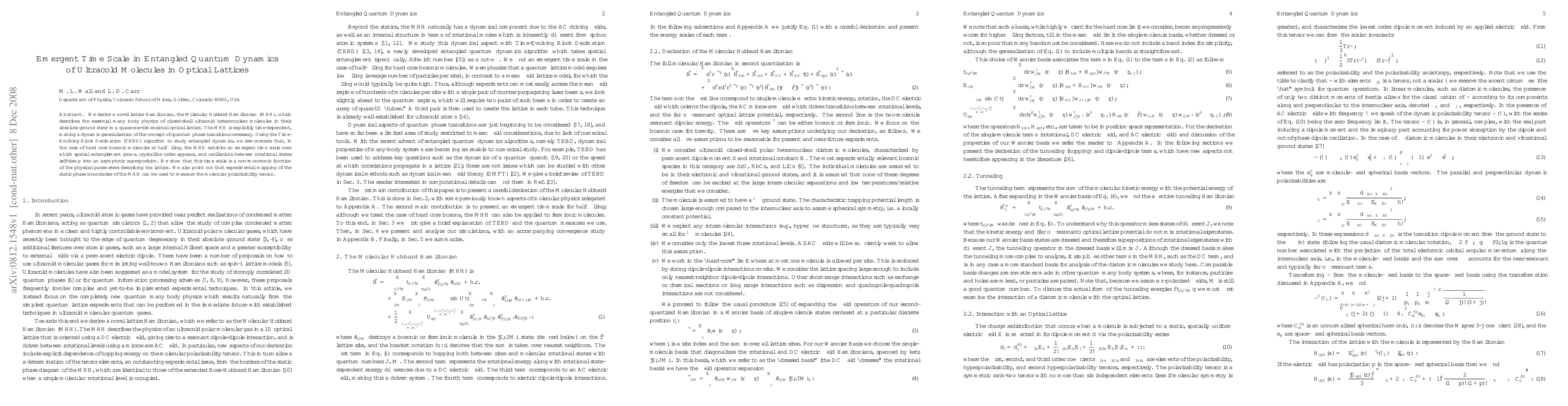 We derive a novel lattice Hamiltonian, the \emph{Molecular Hubbard Hamiltonian} (MHH), which describes the essential many body physics of closed-shell ultracold heteronuclear molecules in their absolute ground state in a quasi-one-dimensional optical lattice. The MHH is explicitly time-dependent, making a dynamic generalization of the concept of quantum phase transitions necessary. Using the Time-Evolving Block Decimation (TEBD) algorithm to study entangled dynamics, we demonstrate that, in the case of hard core bosonic molecules at half filling, the MHH exhibits an emergent time scale over which spatial entanglement grows, crystalline order appears, and oscillations between rotational states self-damp into an asymptotic superposition. We show that this time scale is a non-monotonic function of the physical parameters describing the lattice. We also point out that experimental mapping of the static phase boundaries of the MHH can be used to measure the molecular polarizability tensor.
