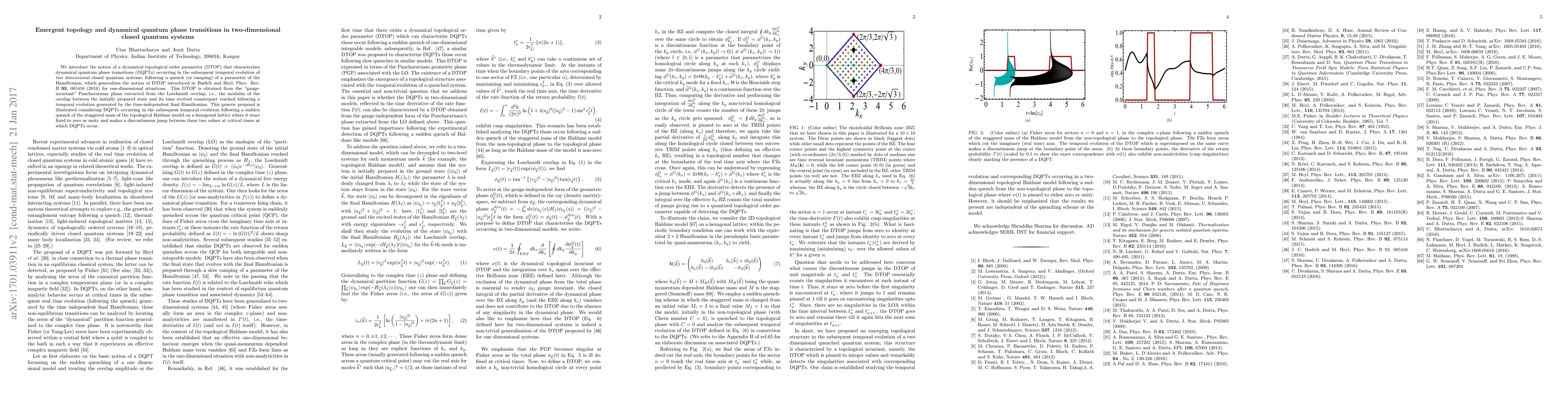 We introduce the notion of a dynamical topological order parameter (DTOP) that characterises dynamical quantum phase transitions (DQPTs) occurring in the subsequent temporal evolution of "two dimensional" closed quantum systems, following a quench (or ramping) of a parameter of the Hamiltonian, {which generalizes the notion of DTOP introduced in Budich and Heyl, Phys. Rev. B 93, 085416 (2016) for one-dimensional situations}. This DTOP is obtained from the "gauge-invariant" Pancharatnam phase extracted from the Loschmidt overlap, i.e., the modulus of the overlap between the initially prepared state and its time evolved counterpart reached following a temporal evolution generated by the time-independent final Hamiltonian. This generic proposal is illustrated considering DQPTs occurring in the subsequent temporal evolution following a sudden quench of the staggered mass of the topological Haldane model on a hexagonal lattice where it stays fixed to zero or unity and makes a discontinuous jump between these two values at critical times at which DQPTs occur.