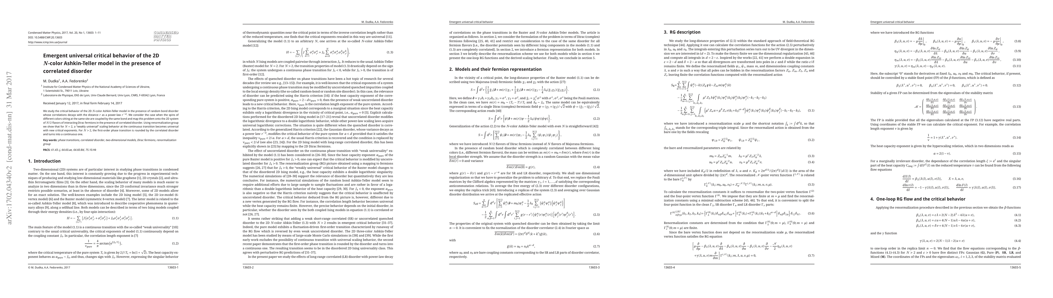 We study the critical behavior of the 2D $N$-color Ashkin-Teller model in the presence of random bond disorder whose correlations decays with the distance $r$ as a power-law $r^{-a}$. We consider the case when the spins of different colors sitting at the same site are coupled by the same bond and map this problem onto the 2D system of $N/2$ flavors of interacting Dirac fermions in the presence of correlated disorder. Using renormalization group we show that for $N=2$, a "weakly universal" scaling behavior at the continuous transition becomes universal with new critical exponents. For $N>2$, the first-order phase transition is rounded by the correlated disorder and turns into a continuous one.