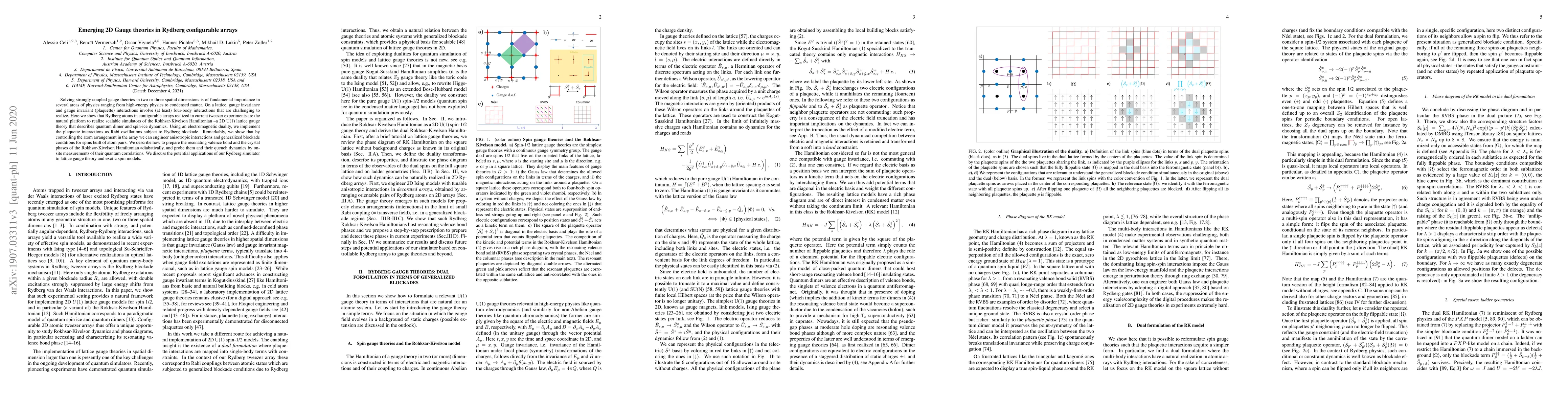 This paper demonstrates how Rydberg atoms in configurable arrays can simulate 2D gauge theories, specifically the Rokhsar-Kivelson Hamiltonian, by implementing gauge invariant interactions via Rydberg blockade and Rabi oscillations. The study also explores the preparation and probing of quantum phases and their dynamics in these systems.