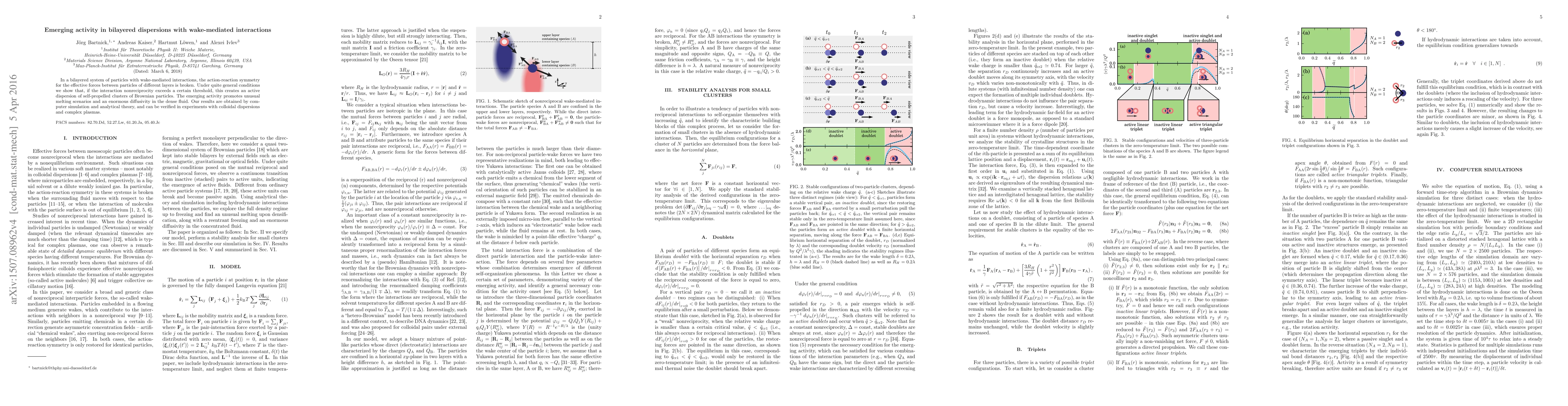 This paper explores bilayered dispersions where wake-mediated interactions break action-reaction symmetry, leading to active self-propelled clusters when interaction nonreciprocity surpasses a threshold. The study reveals unusual melting and high diffusivity in dense fluids, supported by simulations and analytical theory, with potential experimental verification in colloidal dispersions and complex plasmas.