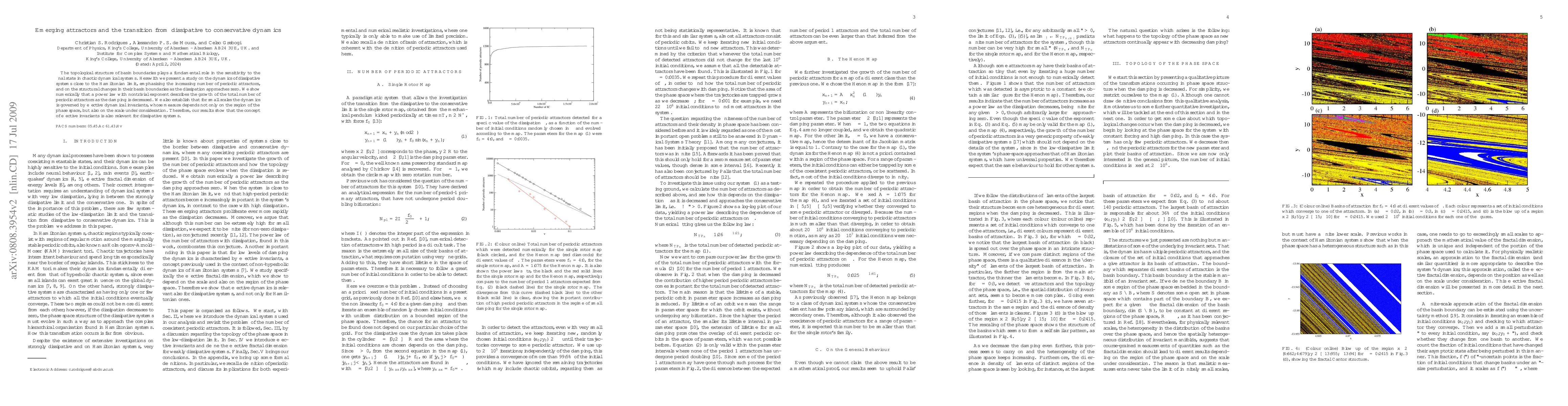 The topological structure of basin boundaries plays a fundamental role in the sensitivity to the initial conditions in chaotic dynamical systems. Herewith we present a study on the dynamics of dissipative systems close to the Hamiltonian limit, emphasising the increasing number of periodic attractors and on the structural changes in their basin boundaries as the dissipation approaches zero. We show numerically that a power law with nontrivial exponent describes the growth of the total number of periodic attractors as the damping is decreased. We also establish that for small scales the dynamics is governed by \emph{effective} dynamical invariants, whose measure depends not only on the region of the phase space, but also on the scale under consideration. Therefore, our results show that the concept of effective invariants is also relevant for dissipative systems.