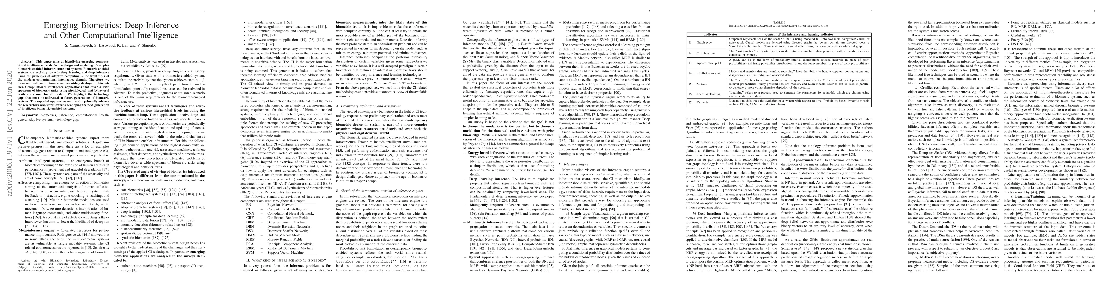 This paper aims at identifying emerging computational intelligence trends for the design and modeling of complex biometric-enabled infrastructure and systems. Biometric-enabled systems are evolving towards deep learning and deep inference using the principles of adaptive computing, - the front tides of the modern computational intelligence domain. Therefore, we focus on intelligent inference engines widely deployed in biometrics. Computational intelligence applications that cover a wide spectrum of biometric tasks using physiological and behavioral traits are chosen for illustration. We highlight the technology gaps that must be addressed in future generations of biometric systems. The reported approaches and results primarily address the researchers who work towards developing the next generation of intelligent biometric-enabled systems.