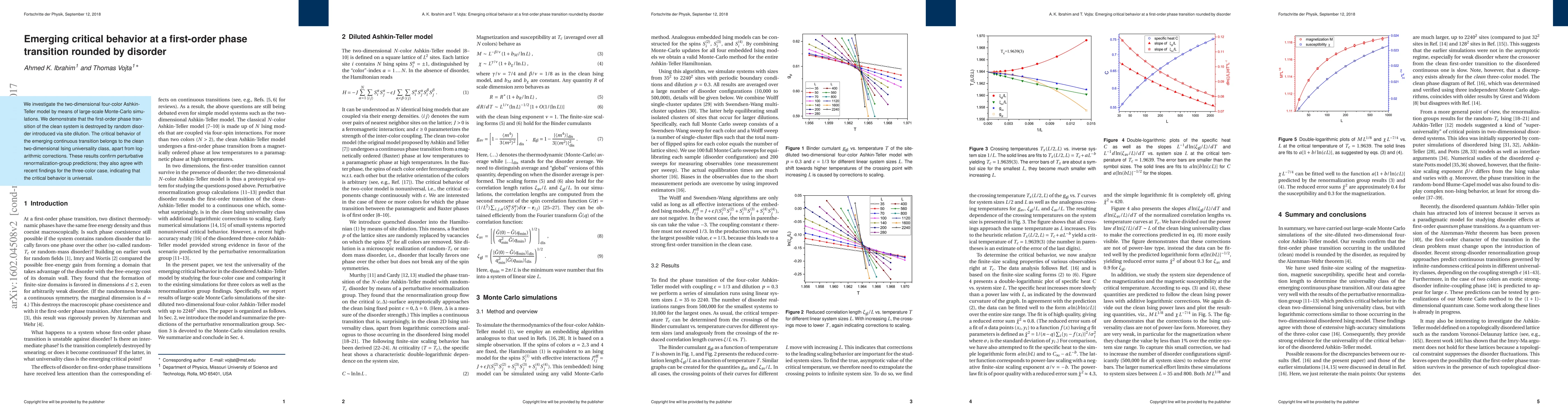 We investigate the two-dimensional four-color Ashkin-Teller model by means of large-scale Monte-Carlo simulations. We demonstrate that the first-order phase transition of the clean system is destroyed by random disorder introduced via site dilution. The critical behavior of the emerging continuous transition belongs to the clean two-dimensional Ising universality class, apart from logarithmic corrections. These results confirm perturbative renormalization-group predictions; they also agree with recent findings for the three-color case, indicating that the critical behavior is universal.