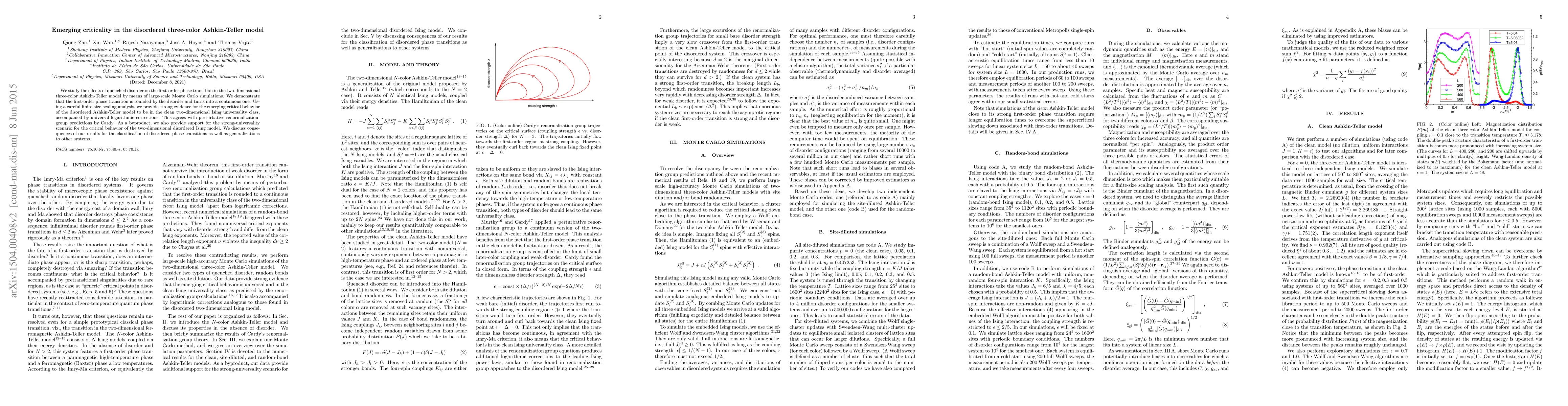 This paper investigates how quenched disorder alters the first-order phase transition in the two-dimensional three-color Ashkin-Teller model, demonstrating through simulations that the transition becomes continuous and exhibits critical behavior akin to the clean two-dimensional Ising model, supported by universal logarithmic corrections and perturbative predictions.