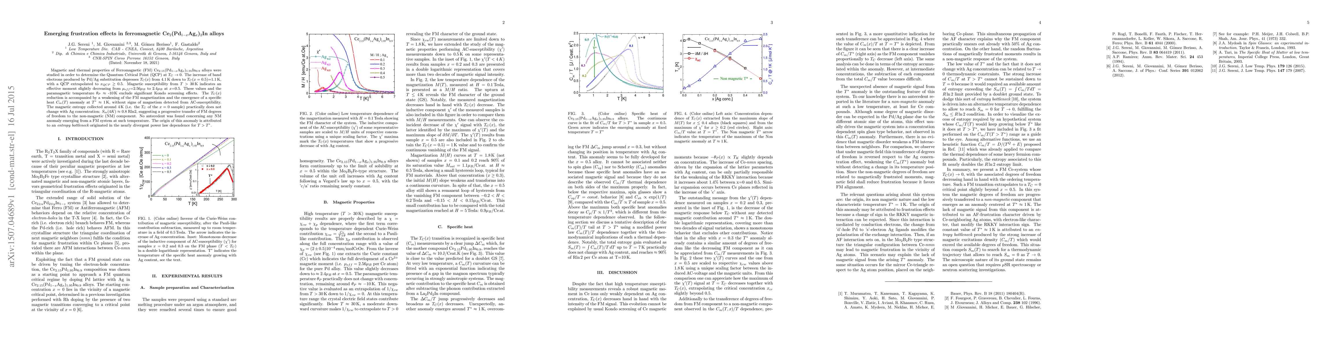 Magnetic and thermal properties of Ferromagnetic (FM) Ce_{2.15}(Pd_{1-x}Ag_x)_{1.95}In_{0.9} alloys were studied in order to determine the Quantum Critical Point (QCP) at T_C => 0. The increase of band electrons produced by Pd/Ag substitution depresses T_C(x) from 4.1K down to T_C(x=0.5)=1.1K, with a QCP extrapolated to x_{QCP}~ 0.6. Magnetic susceptibility from T>30K indicates an effective moment slightly decreasing from \mu_{eff}=2.56\mu_B to 2.4\mu_B at x=0.5. These values and the paramagnetic temperature \theta_P~ -10K exclude significant Kondo screening effects. The T_C(x) reduction is accompanied by a weakening of the FM magnetization and the emergence of a specific heat C_m(T) anomaly at T*~ 1K, without signs of magnetism detected from AC-susceptibility. The magnetic entropy collected around 4K (i.e. the T_C of the x=0 sample) practically does not change with Ag concentration: S_m(4K)~ 0.8 Rln2, suggesting a progressive transfer of FM degrees of freedom to the non-magnetic (NM) component. No antecedent was found concerning any NM anomaly emerging from a FM system at such temperature. The origin of this anomaly is attributed to an 'entropy bottleneck' originated in the nearly divergent power law dependence for T>T*.