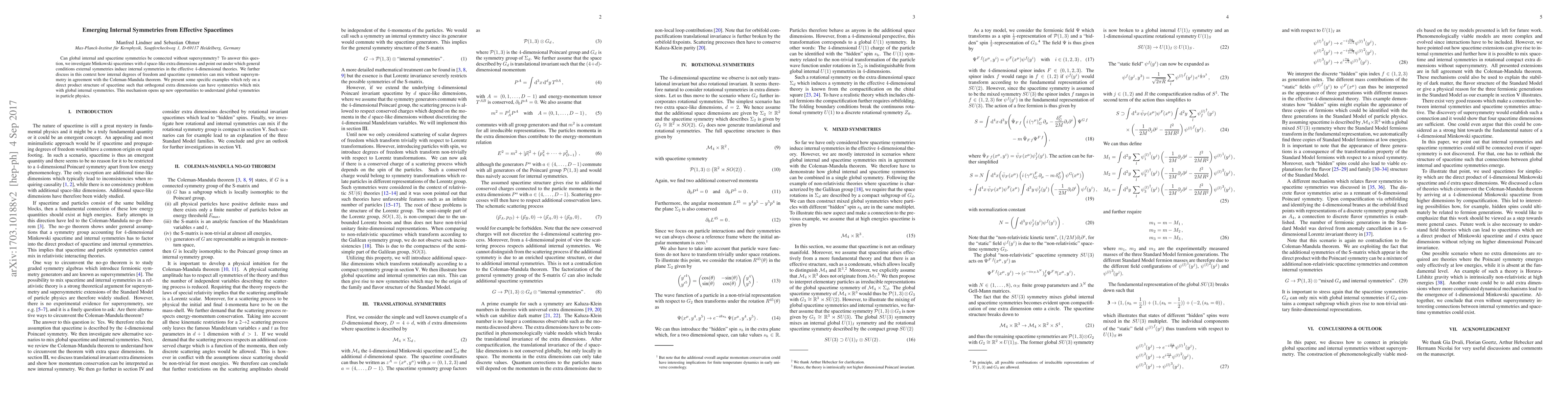 Researchers investigate if global internal symmetries can be connected to spacetime symmetries without supersymmetry, finding conditions under which external symmetries induce internal symmetries in effective 4-dimensional theories.